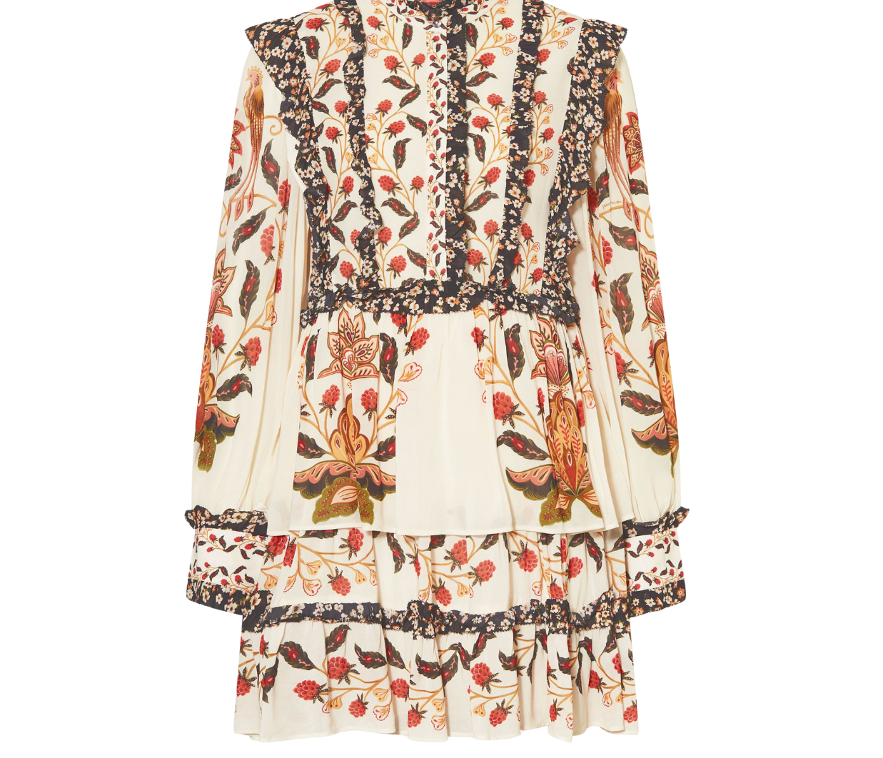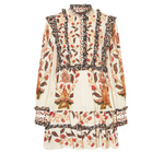 Introducing Farm Rio's Berry Garden Cream Mini Dress, a long-sleeve mini dress silhoutte