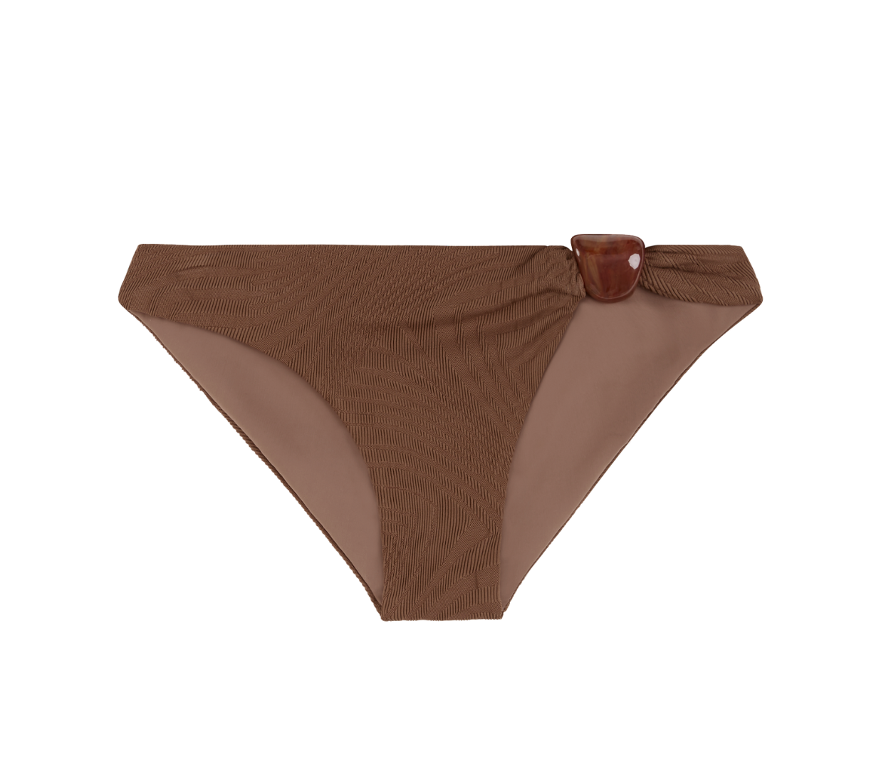 Introducing Fella’s Digby Bottom in Pinecone, a classic low-rise bikini bottom in a rich brown hue. Detailed with a single-sided Italian Plexiglas bead, featuring a conservative cut and fully lined construction for a smooth, comfortable fit, it’s an elegant staple for effortless swim styling.