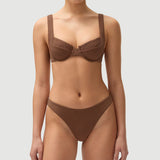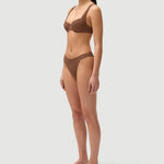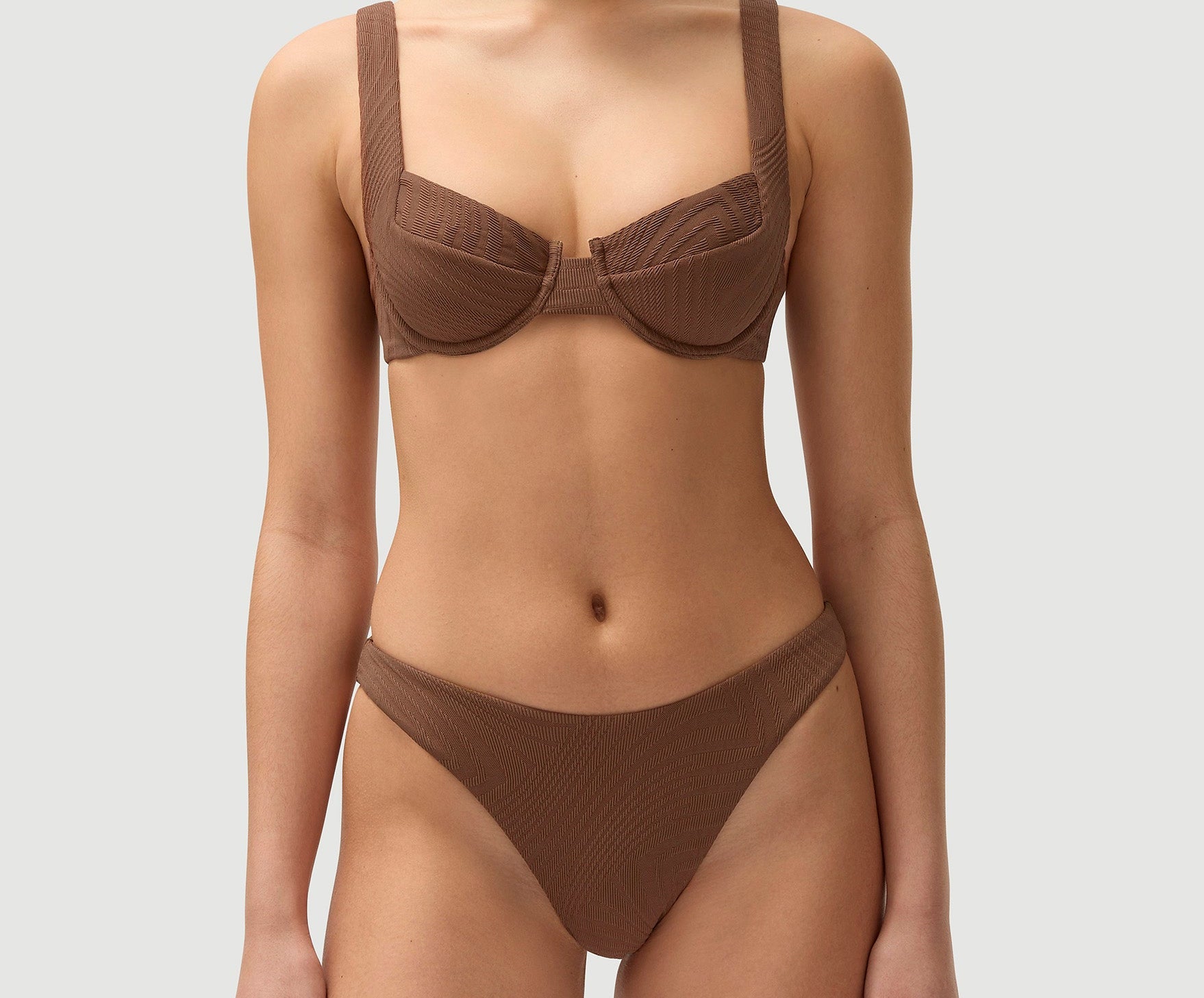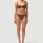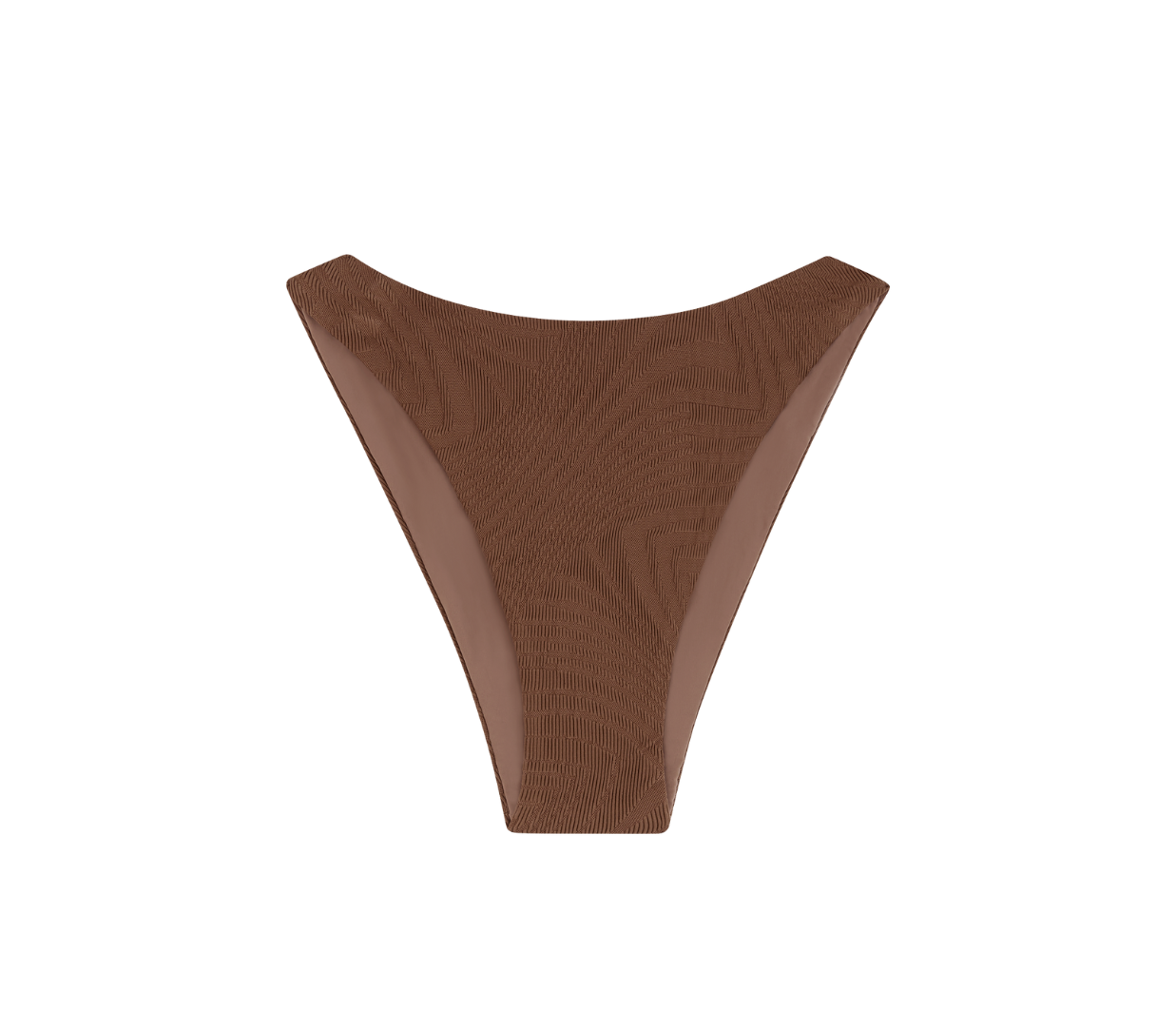 Introducing Fella’s Elvis Bottom in Pinecone, a high-cut 90s-inspired bikini bottom in a warm, earthy brown hue. Designed to elongate the legs and accentuate the waist, the Elvis bottom offers a cheeky to conservative cut that flatters all body shapes. Fully lined for a smooth, supportive fit, it’s a timeless swim essential.
