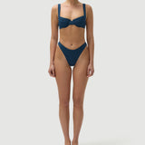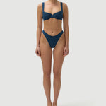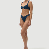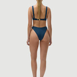 Introducing Fella’s Elvis Bottom in Poseidon, a high-cut 90s-inspired bikini bottom in a deep, oceanic blue with subtle green undertones. Designed to elongate the legs and define the waist, this versatile silhouette offers a cheeky to conservative cut that flatters all shapes and sizes. Fully lined for a smooth, comfortable fit, it’s the perfect balance of retro nostalgia and modern minimalism.