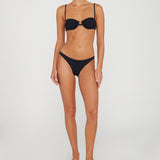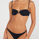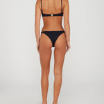 Introducing FELLA’s Gabriel Top. The underwired design provides exceptional support and shape, ensuring that you feel confident and comfortable throughout the day. Adjustable shoulder straps and a convenient back clasp make it easy to customise the fit to your liking. Perfectly suited for those with smaller bust sizes, this bralette offers a balance between less coverage and outstanding support. You can trust that it will provide the shaping and structure you desire. Pair yours with the matching Elvis Bikini Bottom in Black.