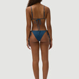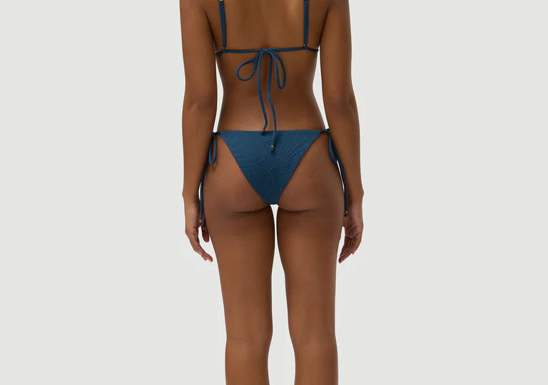Introducing Fella’s Marcus Bikini Bottom in Poseidon, a low-rise string bikini bottom in a deep, rich blue with subtle green undertones. Designed with adjustable tie sides for a customizable fit, this low side-tie silhouette features a cheeky cut that enhances and flatters the figure. Fully lined for comfort and confidence, it’s a timeless swim essential with a modern, minimalist edge.