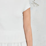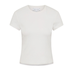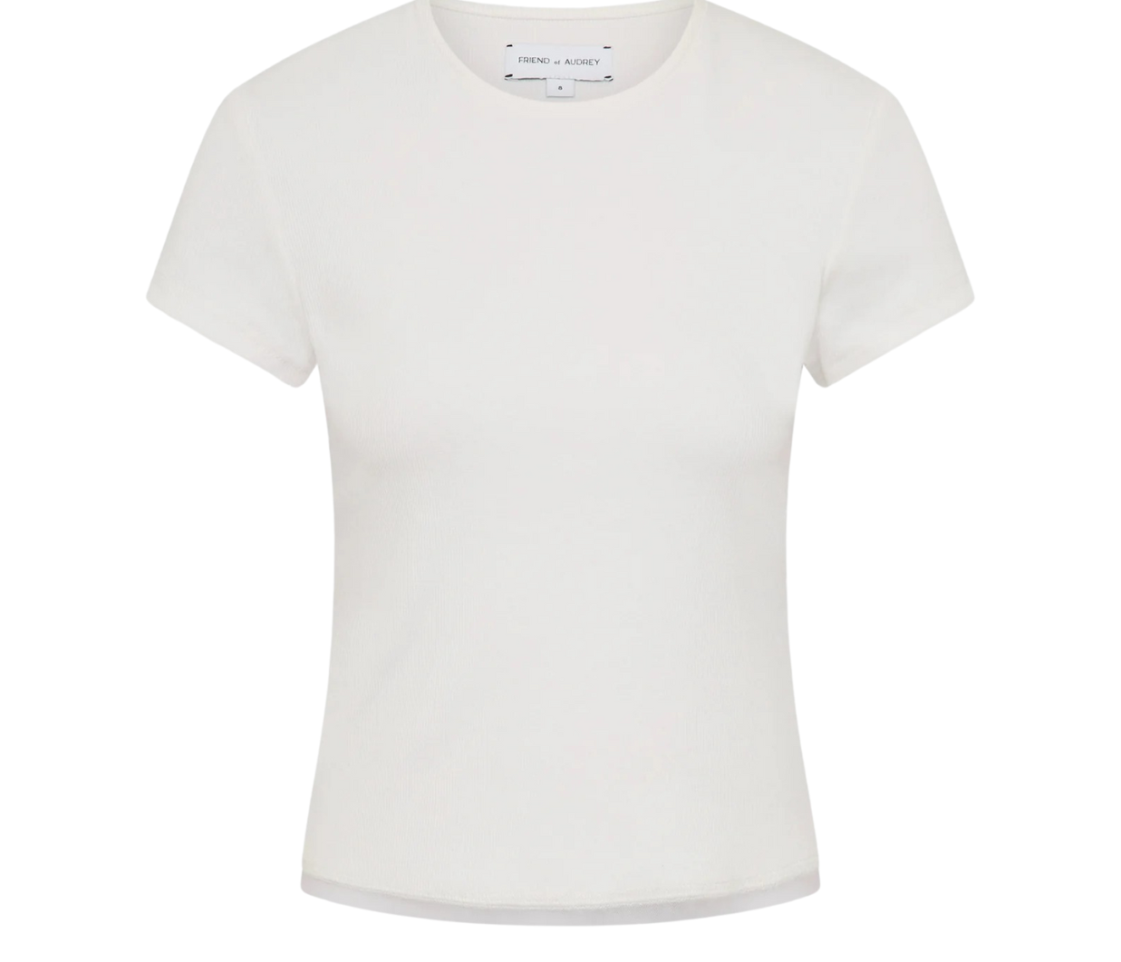 Introducing Friend of Audrey's Cotton Mesh Baby Tee in White, a baby tee shirt in a white hue. Designed with a short sleeve capped in stretch ribbed cotton with a mesh trim along the hem, a staple essential for everyday wear.