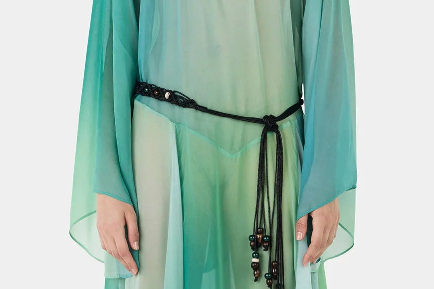 Introducing Hansen and Gretel’s Bonnie Belt in Black, a sleek, handwoven belt adorned with black and metallic beads and finished with matching tassels. Its intricate detailing highlights artisanal craftsmanship, making it a versatile accessory that adds subtle bohemian texture and elegance to any outfit.