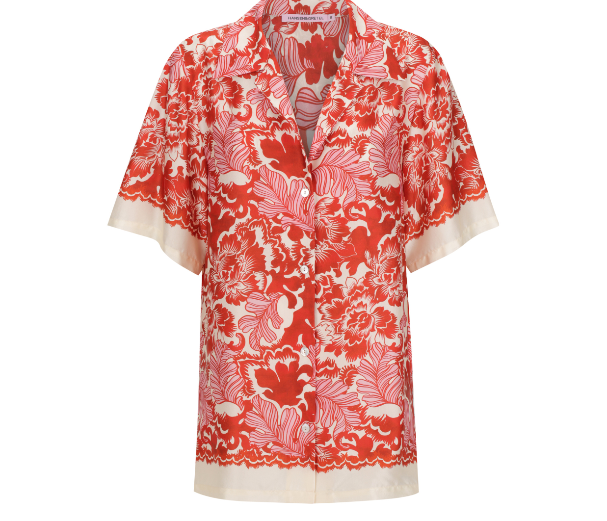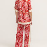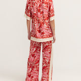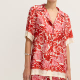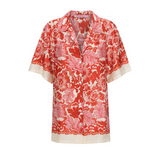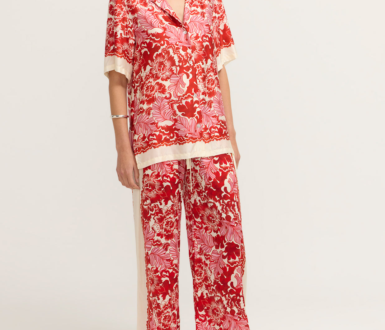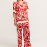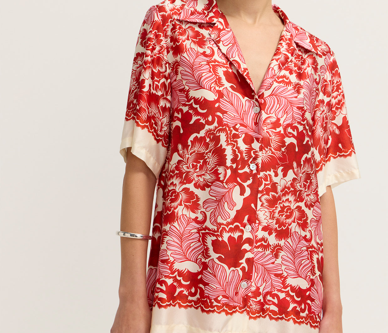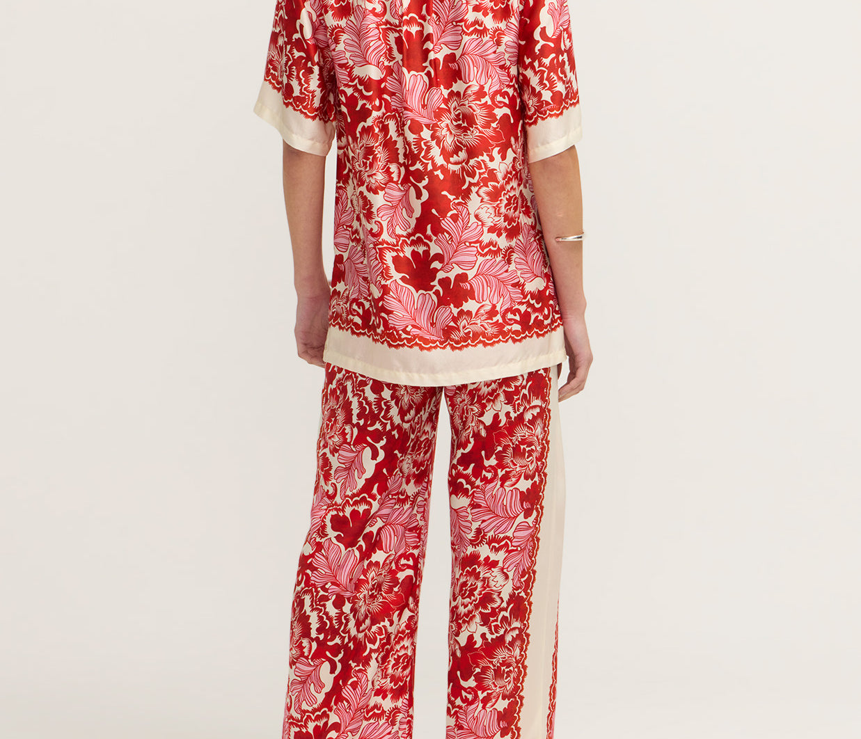 Introducing the Zinnia Shirt in Scarlet Garden, a relaxed-fit button-down crafted from a luxurious silk blend in this season's captivating Scarlet Garden print. Designed to feel light and silky, the unlined construction ensures effortless wear. Featuring a classic back yoke and a box pleat for added ease, this shirt is as stylish as it is comfortable. Pair it with the matching Empress Relaxed Pant for a seamless tonal set that transitions beautifully from day to night.