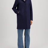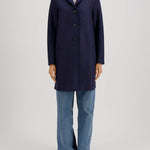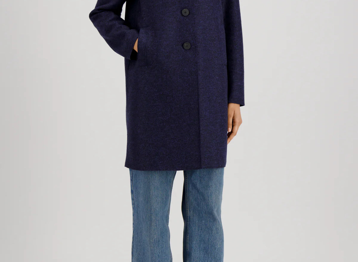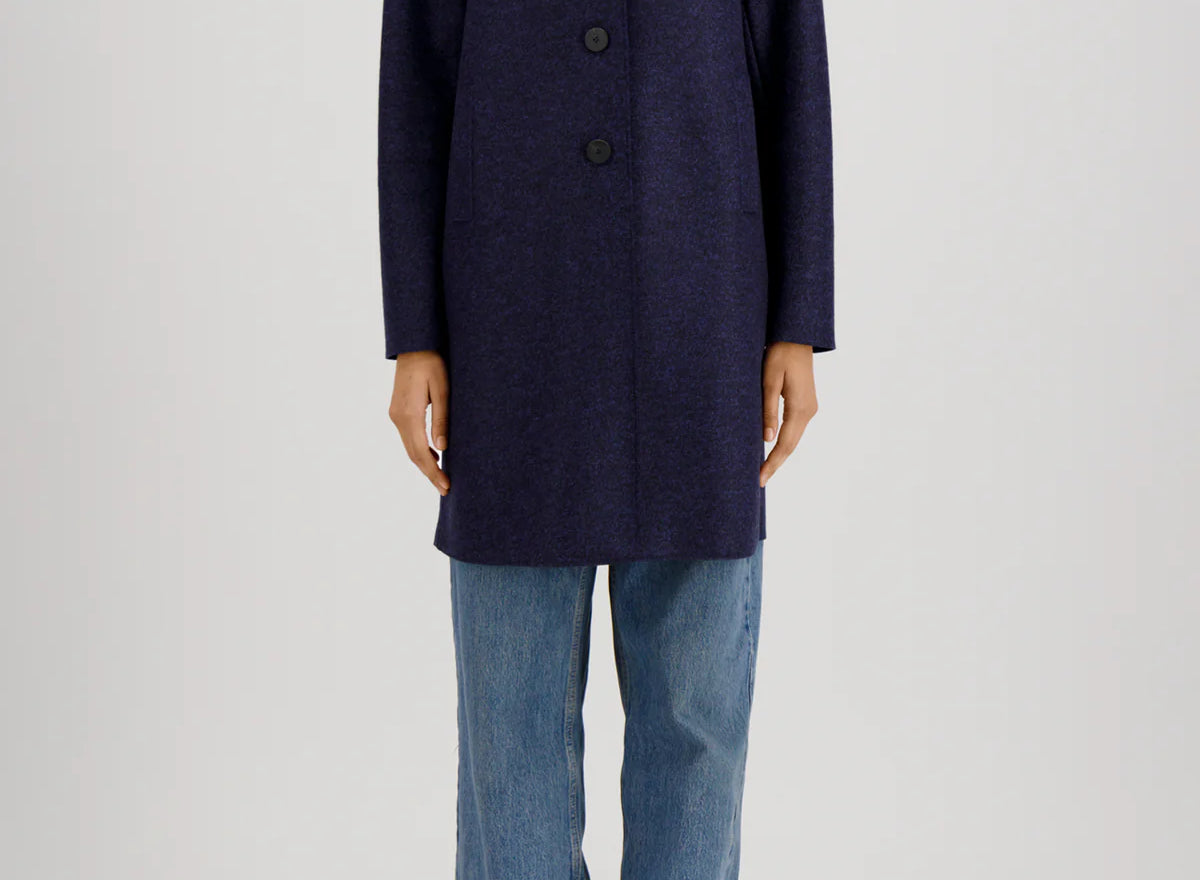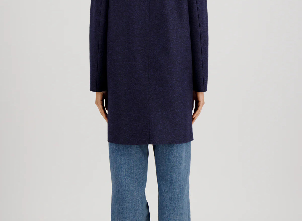 Introducing the Boxy Light Pressed Wool Coat in Navy, features a classic overcoat shape, offering both style and warmth. With its fitted sleeves and dropped shoulders, it provides a relaxed yet structured silhouette that’s perfect for layering. The 3-button fastening adds a refined, tailored touch, while the side seam pockets offer both functionality and convenience.