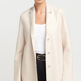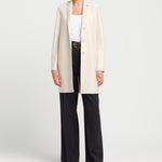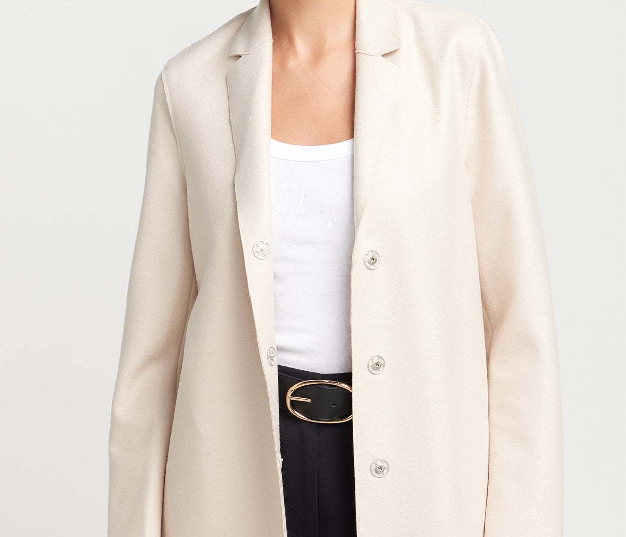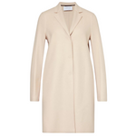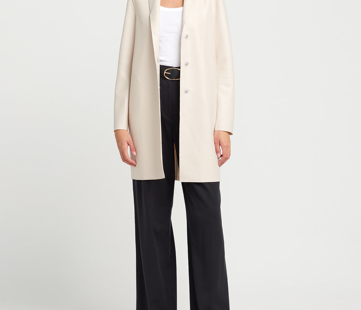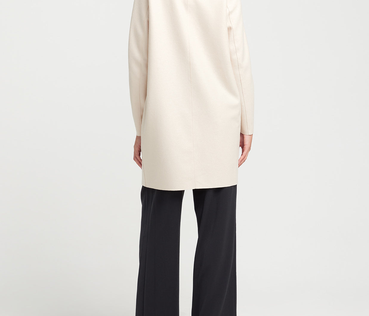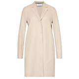 Crafted from luxurious brown virgin wool with a felted finish, this coat boasts sophisticated style and warmth. It features notched lapels and a concealed front press-stud fastening for a sleek look. The long sleeves and straight hem offer classic elegance, while the unlined interior ensures comfort. Complete with two side inset pockets, this above-knee length coat is both practical and refined.