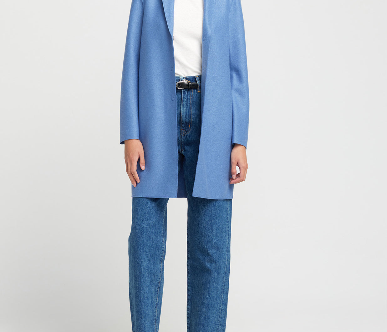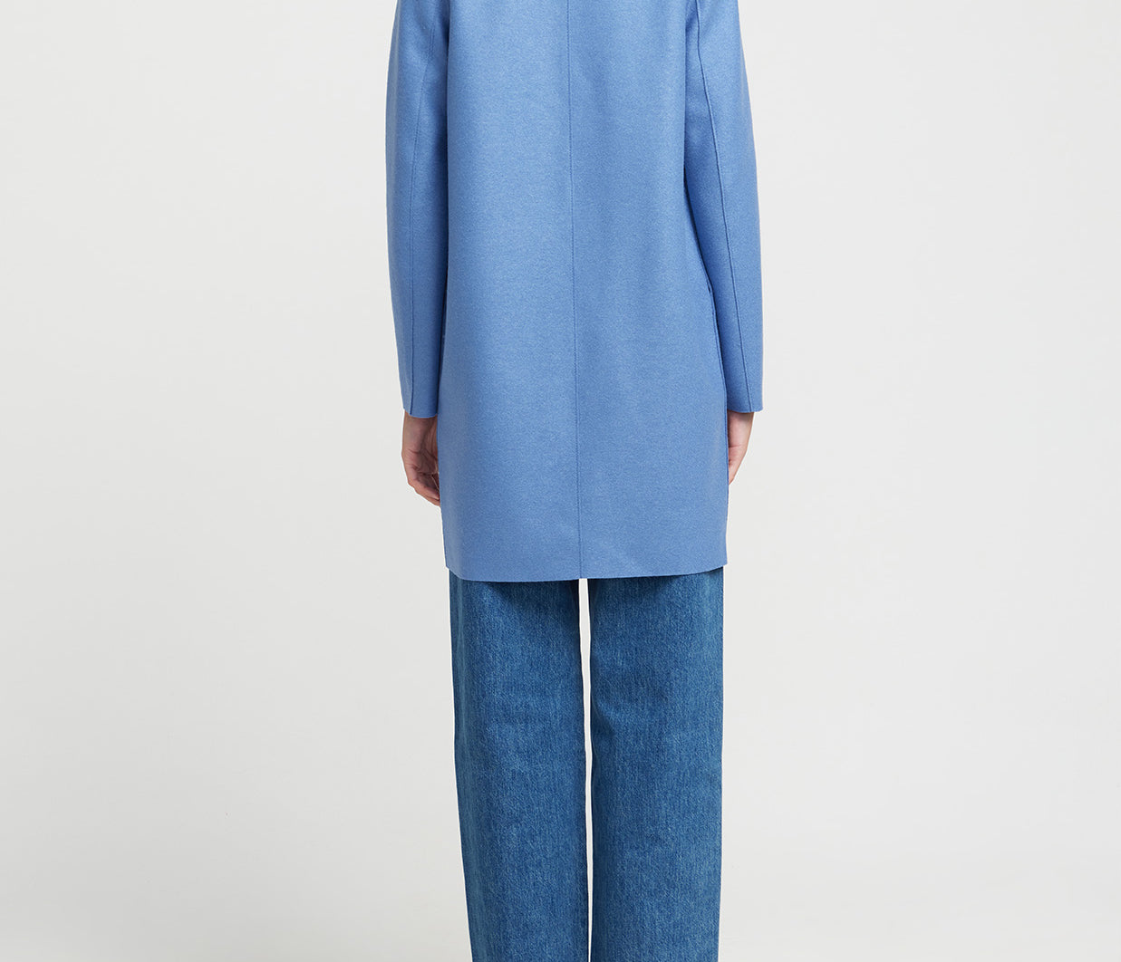 Crafted from luxurious brown virgin wool with a felted finish, this coat boasts sophisticated style and warmth. It features notched lapels and a concealed front press-stud fastening for a sleek look. The long sleeves and straight hem offer classic elegance, while the unlined interior ensures comfort. Complete with two side inset pockets, this above-knee length coat is both practical and refined.