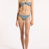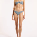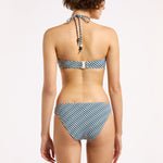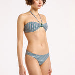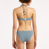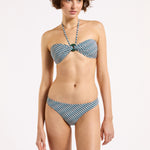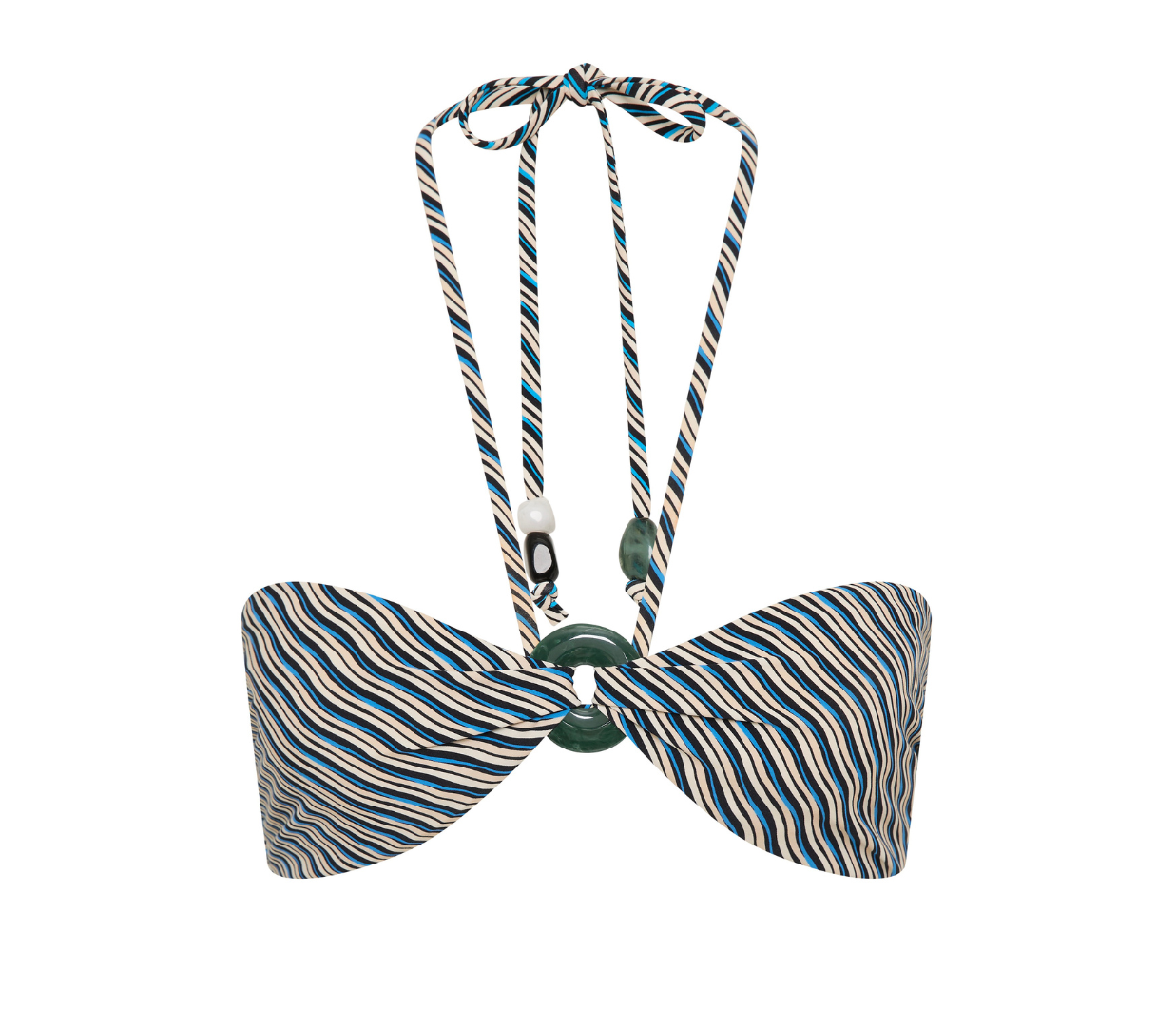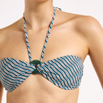 Introducing Jets Onda Bandeau Halter Top in Poolside, a halter bandeau bikini swimwear top in an exclusive poolside stripe print pattern. The halter bikini top features a soft curved bandeau with a central resin ring that creates gentle gathers through the bust for a refined finish. The removable halter strap offers versatile wear and adjustable support, allowing you to tailor the fit to suit your swim style. Perfect for poolside lounging or elevated resort moments.
