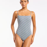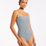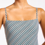 Introducing Jets Onda Minimal One Piece Tank in Poolside, a one-piece swimsuit in the poolside exclusive print. Designed with a classic square neck and adjustable straps. The minimal tank one-piece is made from a custom fabrication that sculpts and holds. Perfect for a summer resort look.