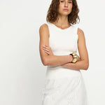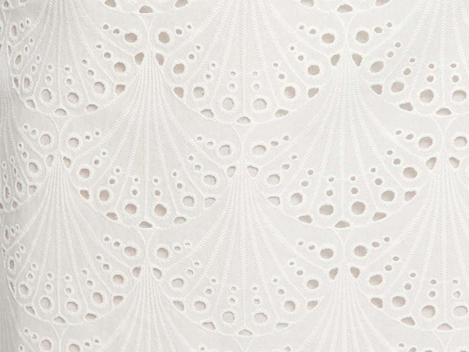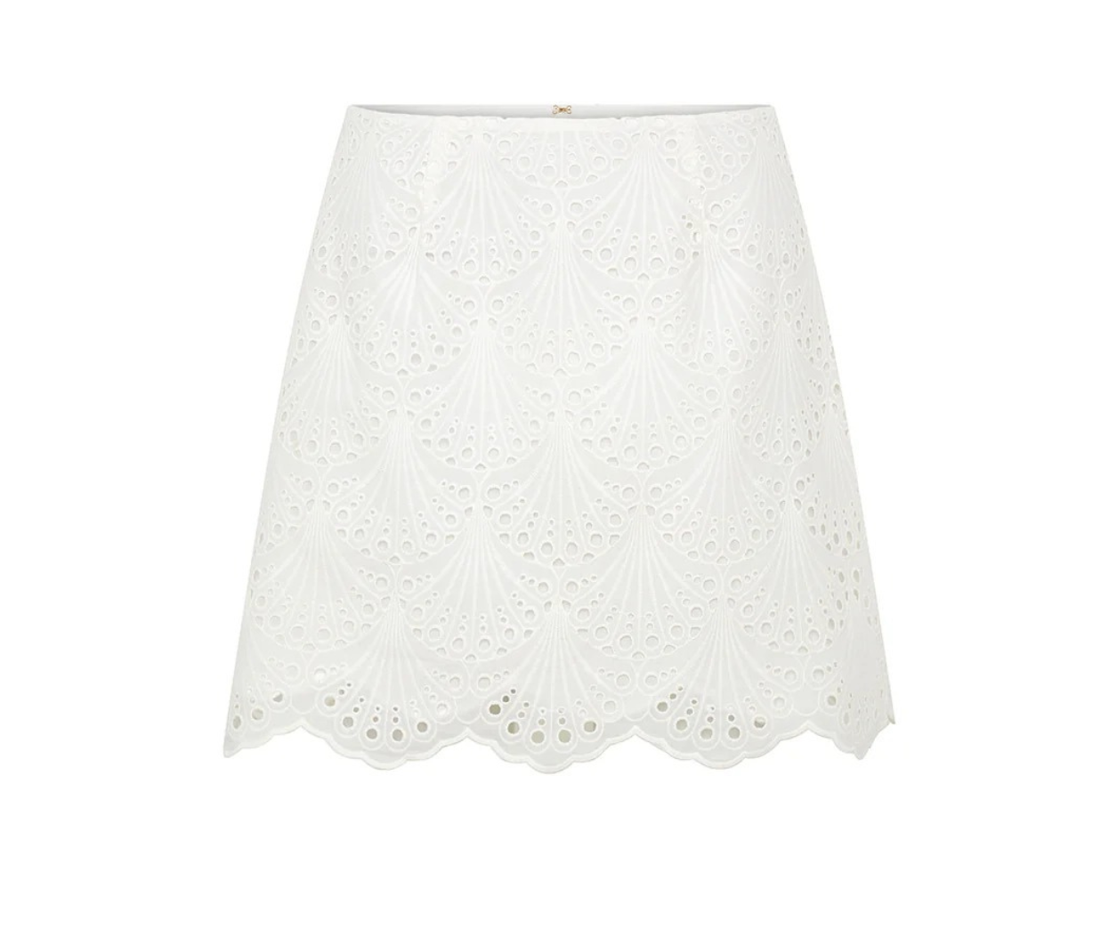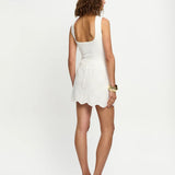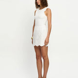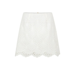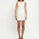 Introducing Kivari's Elodie Mini Skirt in Ivory, a mini crochet skirt in ivory white. The Elodie Mini Skirt is crafted in a shell design broderie, featuring a high waist, scalloped edging along the hemline and invisible back zip for a seamless finish. Style with the matching Elodie Top for a coordinated set, or pair with a simple tank and sandals for effortless daytime dressing.
