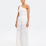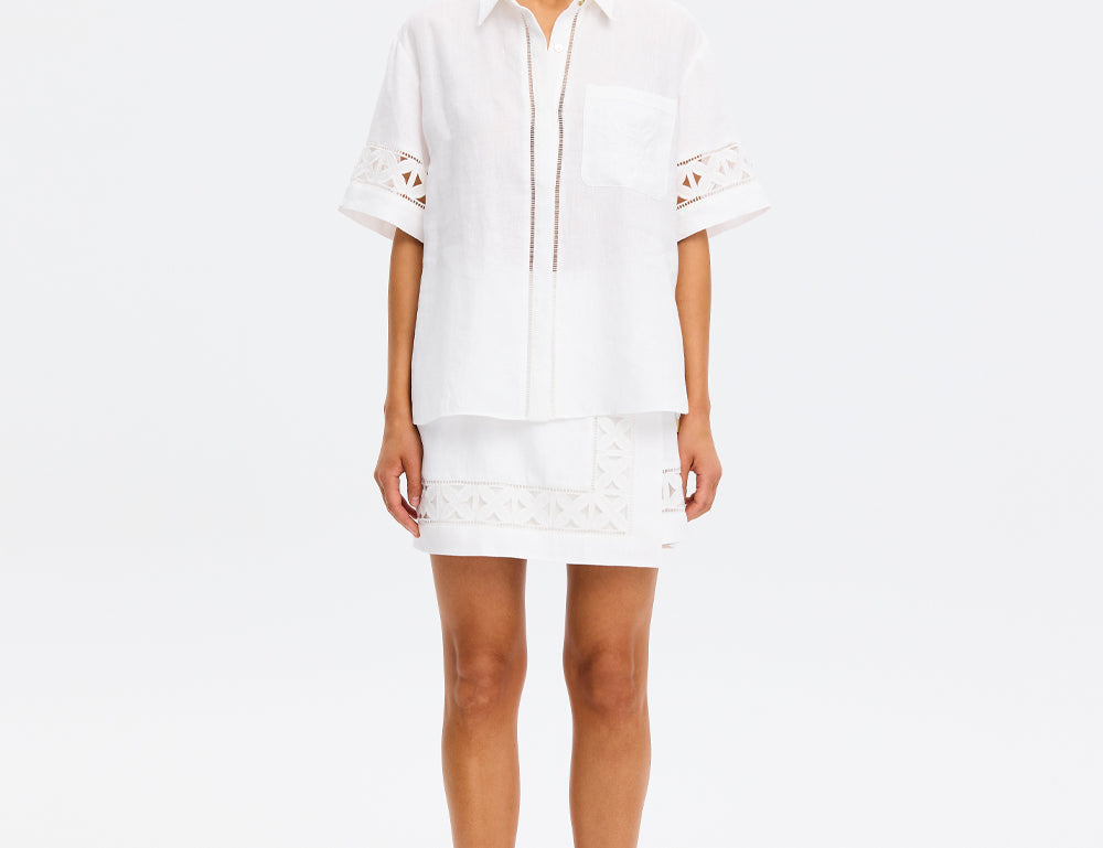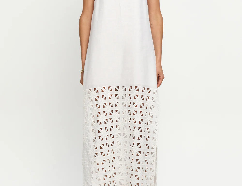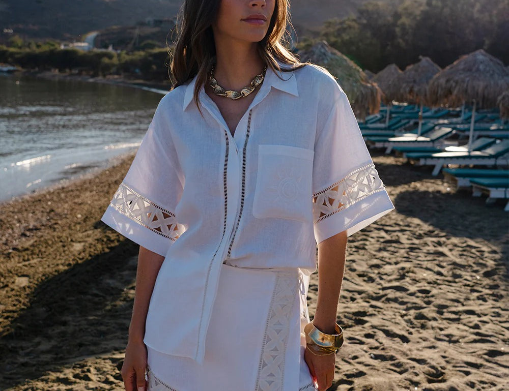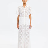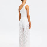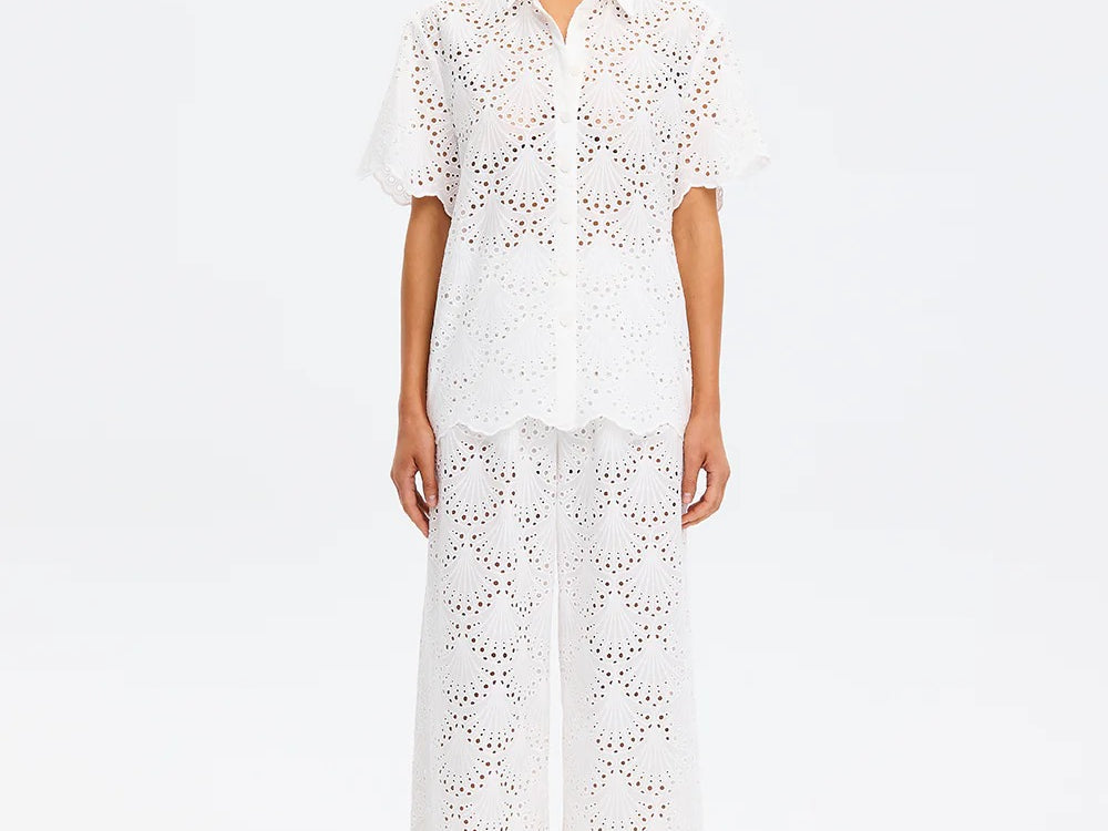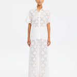 Introducing Kivari's Elodie Pant in Ivory, a relaxed crochet pant silhouette in ivory white. The Elodie Pants is crafted in a shell design broderie with a classic straight leg featuring an elasticated waist complete an adjustable drawcord with signature cord ends. Pair with the matching Elodie Top for a coordinated set, or style with a simple tank for an effortless look.