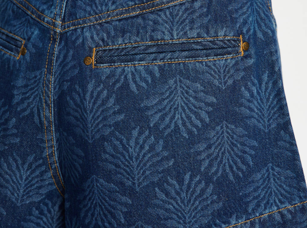 - Tonal leaf print denim