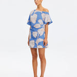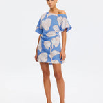 Ilana Off Shoulder Mini Dress in Blue Ivory