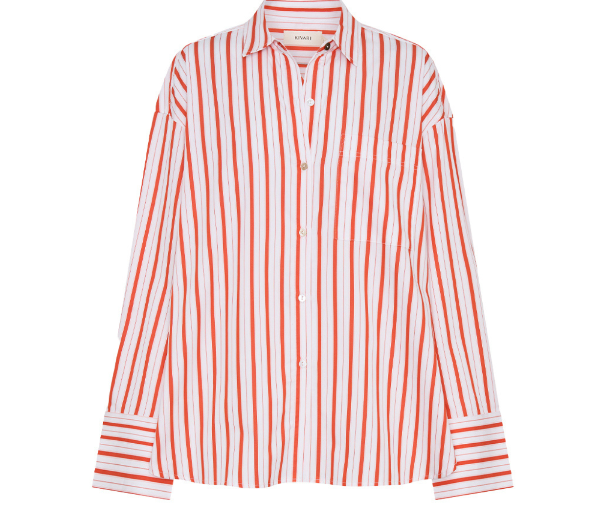 Introducing Kivari’s Maddie Stripe Shirt in Red, a classic button-up shirt in red and white stripes. Designed from 100% cotton, the Maddie long-sleeve shirt features a collared neckline, a single chest pocket, and a drawstring detail at the back waist that allows you to cinch the shape for a more defined fit. Pair it with the matching Maddie Stripe Short for a coordinated look.