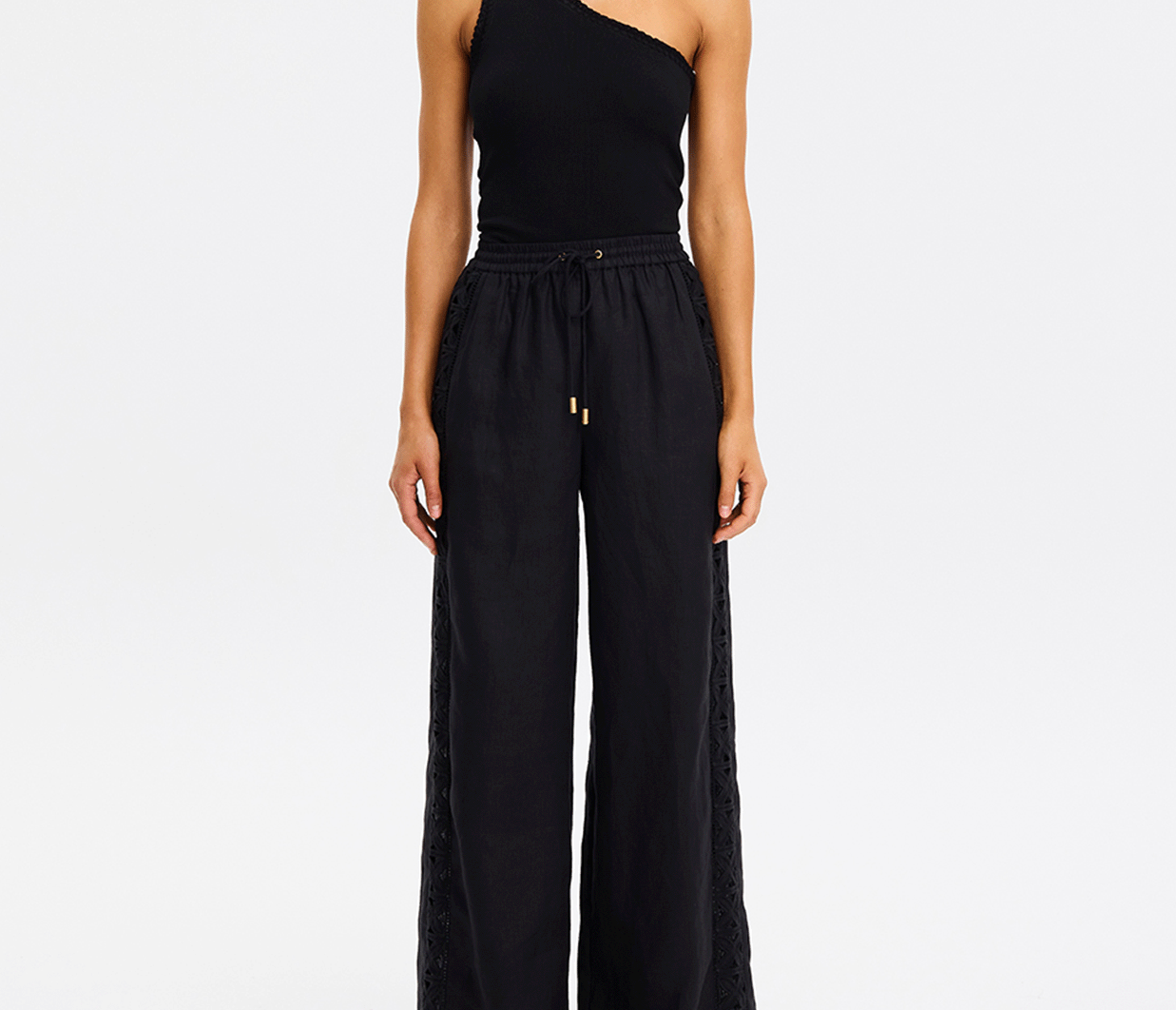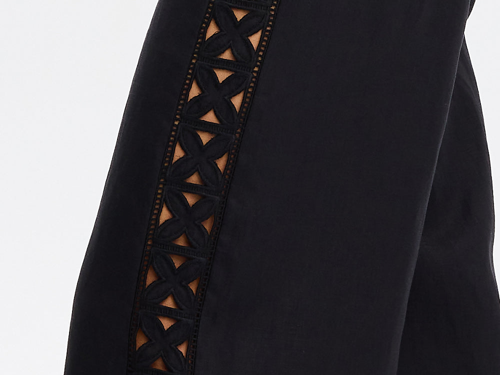 - Cutwork embroidery down the side panels