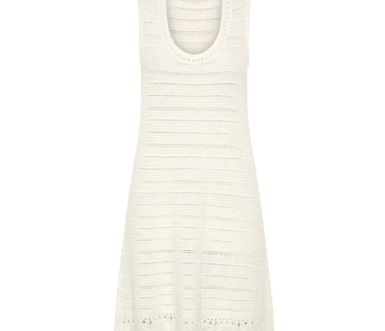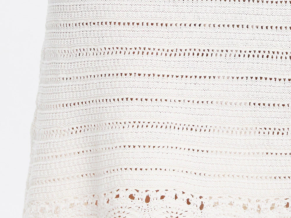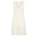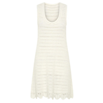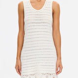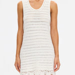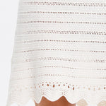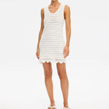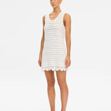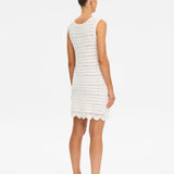 Introducing Kivari's Poppy Knit Mini Dress in Natural, a relaxed mini dress silhouette in an ivory white hue. The Poppy Knit Mini Dress is crafted with crochet stitch fabrication and designed in a relaxed fit. This A-line dress is a reversible style that can be worn as a boat or scoop neckline and is complete with scallop detailing at the hem. Pair with simple sandals for relaxed daytime dressing, or elevate with heels for an afternoon event or summer evening look.