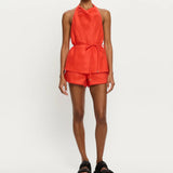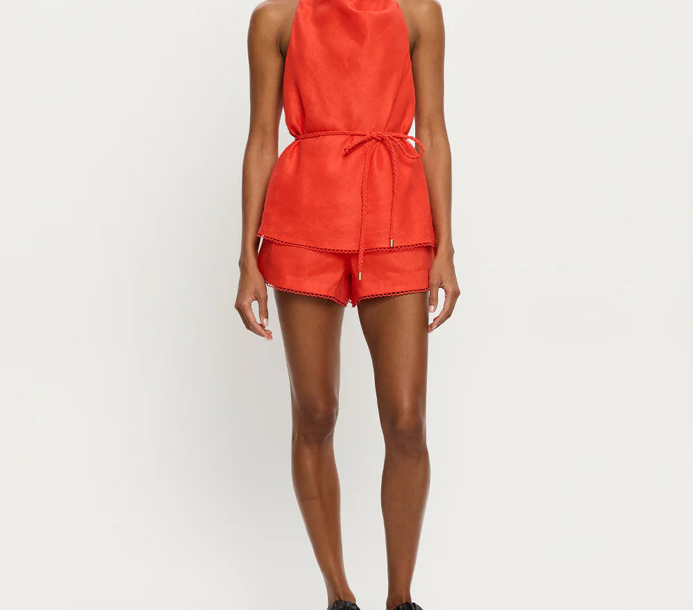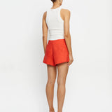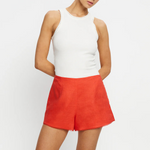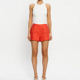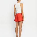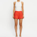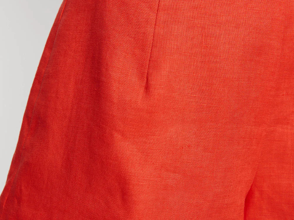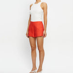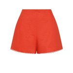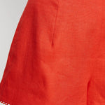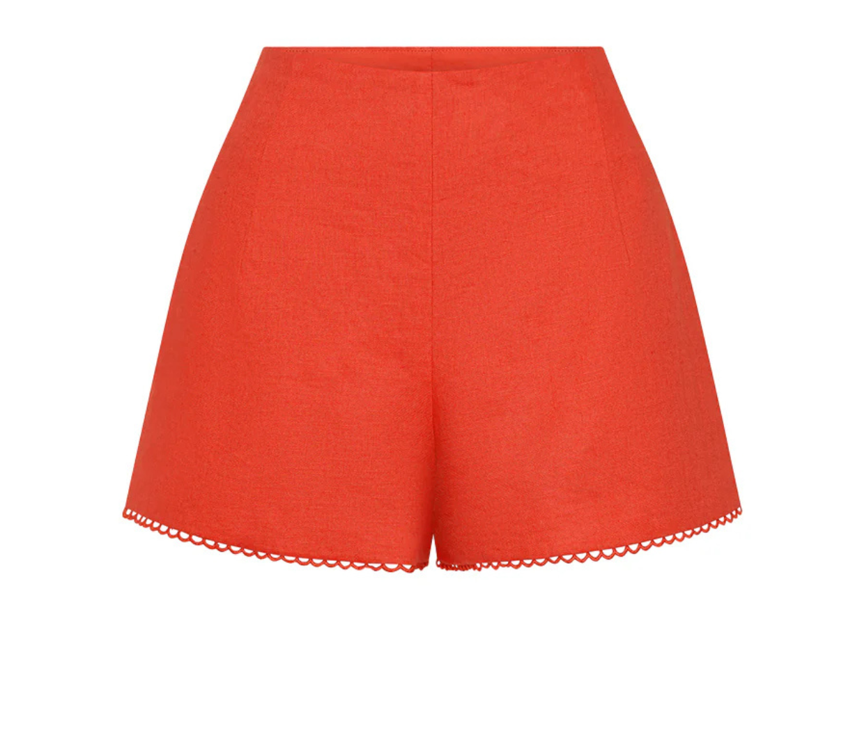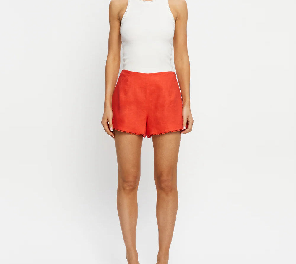 Introducing the Kivari's Tara Short in Red, a mid-rise linen short silhouette in a bold red hue. Designed from premium European Flax linen, the Tara linen shorts feature a fitted waistband that flatters the silhouette and delicate scalloped hem detailing. Fully lined for comfort and finished with an invisible side zip, the Tara Short is a timeless summer essential. Pair with the matching Tara Top for a coordinated look.