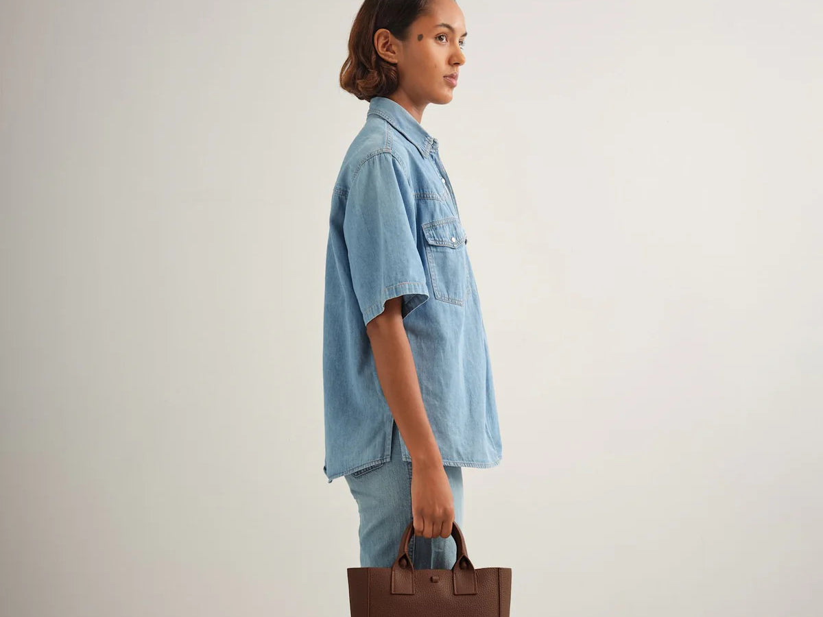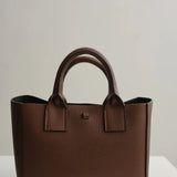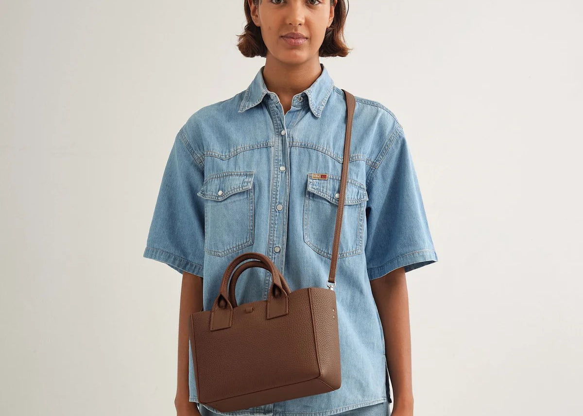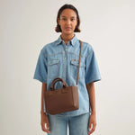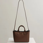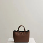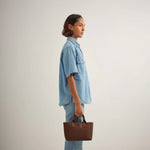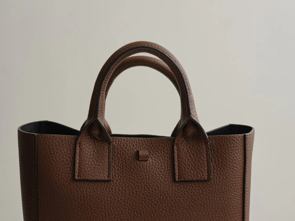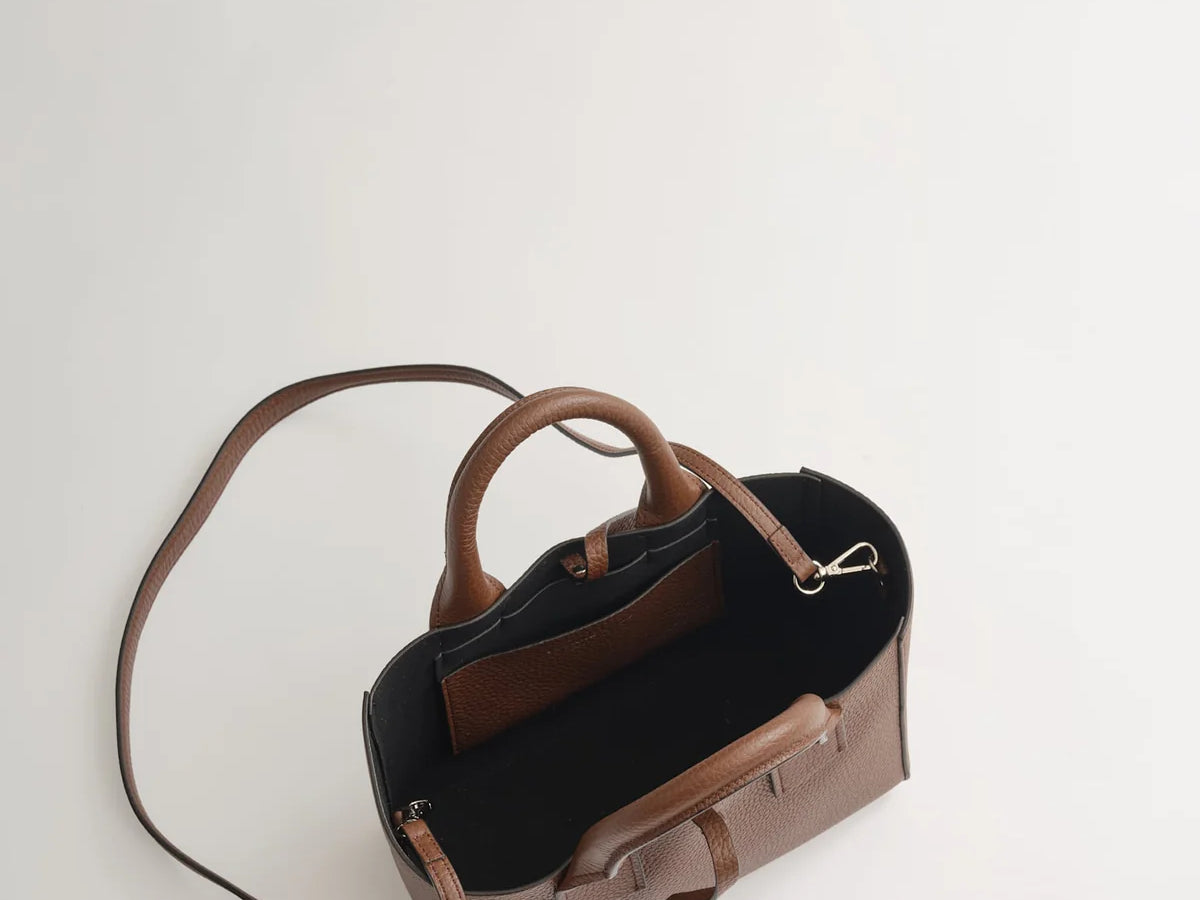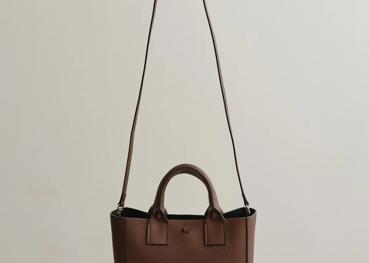 Introducing Kone's Little Filippo Bag in Rio Chocolate, a petite everyday handbag in grained Rio leather. Designed with a discreet inner pocket, it provides practical organization, while a slender leather strap ties in a subtle knot for closure. Sturdy top handles make it ideal as a handbag, and a detachable shoulder strap offers hands-free versatility. Both minimal and enduring, the Little Filippo balances everyday ease with timeless sophistication.