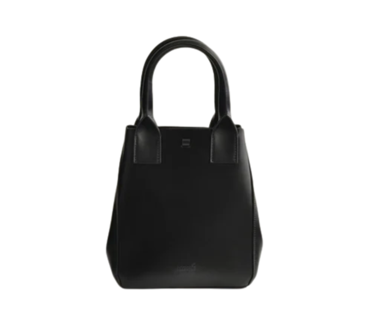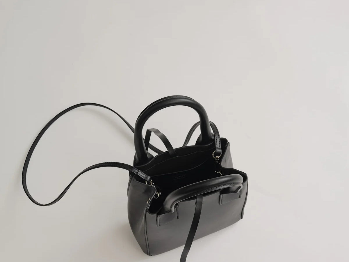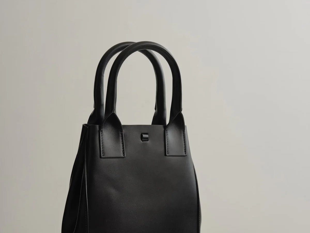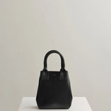 Introducing Kone's Small Filippo Bag 2.0 in Vitello Black, a small, compact crossbody tote bag in black vitello leather. Its refined silhouette features discreet magnetic side closures that create a soft, organic curve. Designed with a distinct sturdy structure handle, a spacious main compartment, an inner pocket, and a detachable shoulder strap for versatile wear. Perfect bag for everyday wear.
