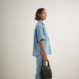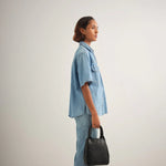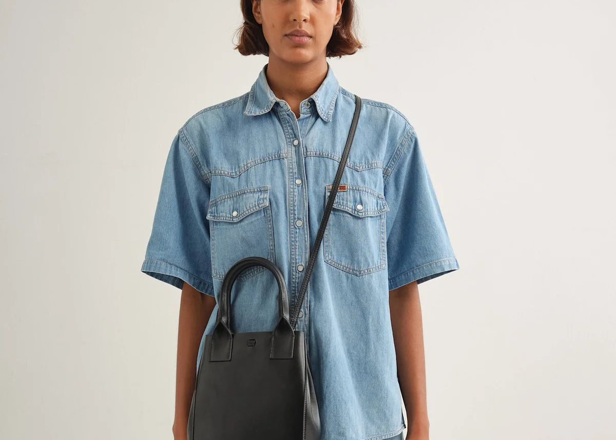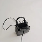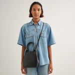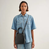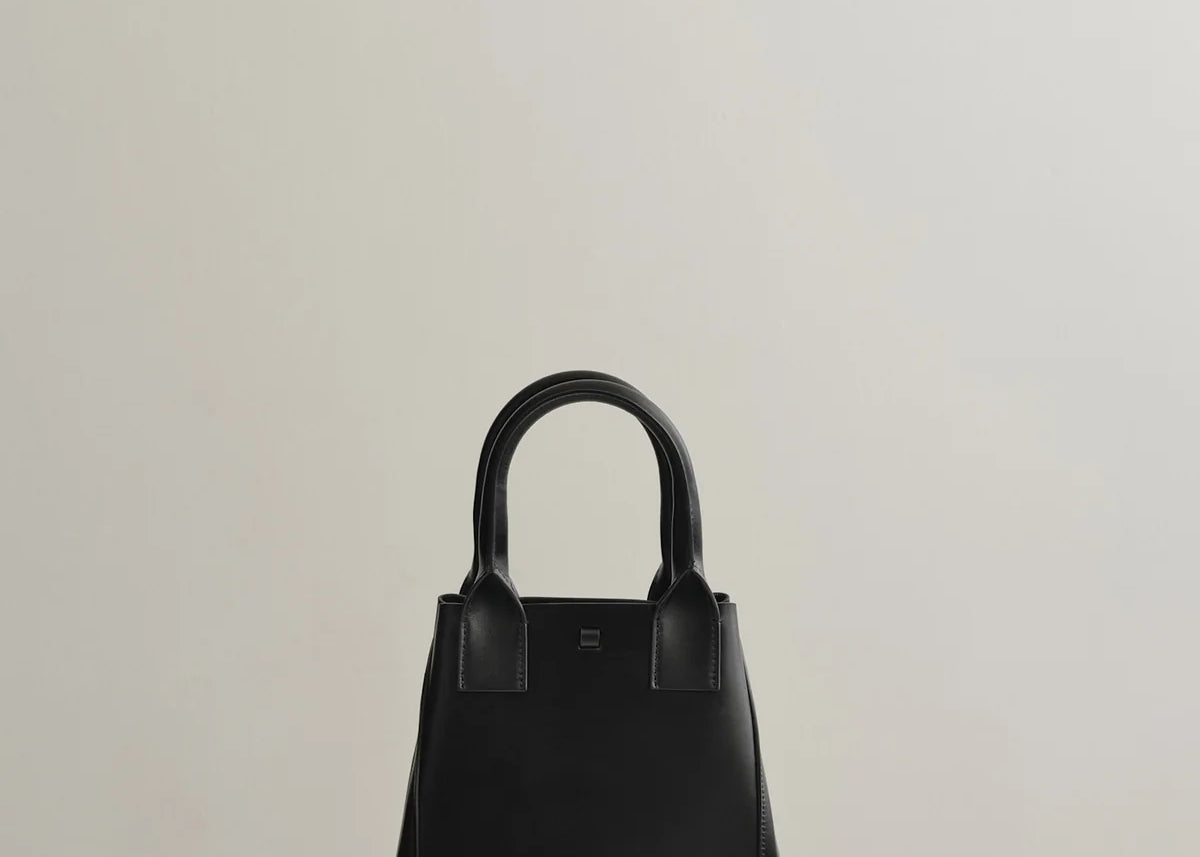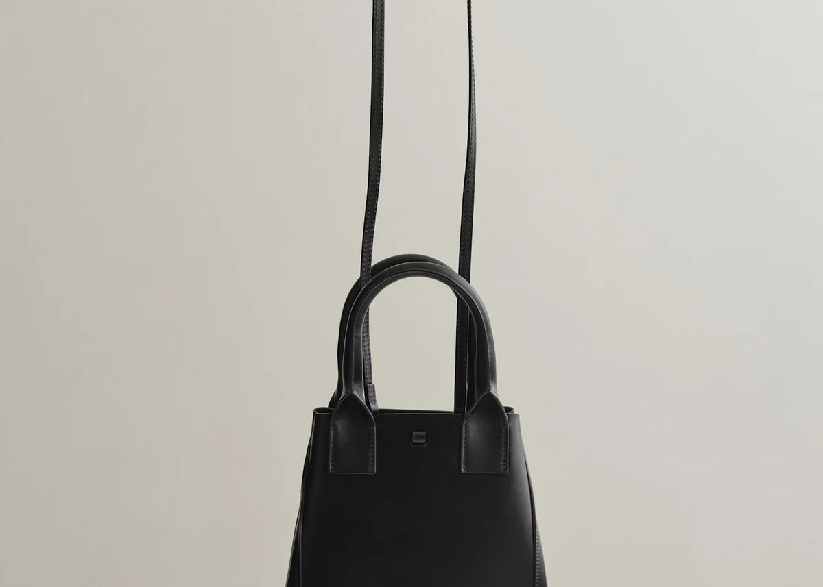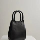 Introducing Kone's Small Filippo Bag 2.0 in Vitello Black, a small, compact crossbody tote bag in black vitello leather. Its refined silhouette features discreet magnetic side closures that create a soft, organic curve. Designed with a distinct sturdy structure handle, a spacious main compartment, an inner pocket, and a detachable shoulder strap for versatile wear. Perfect bag for everyday wear.