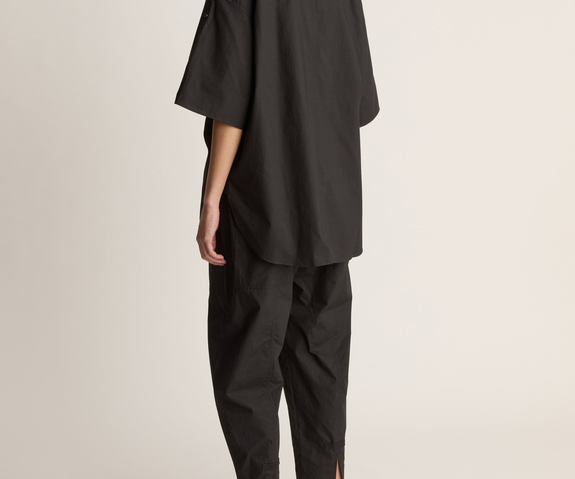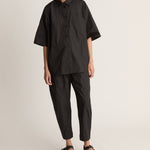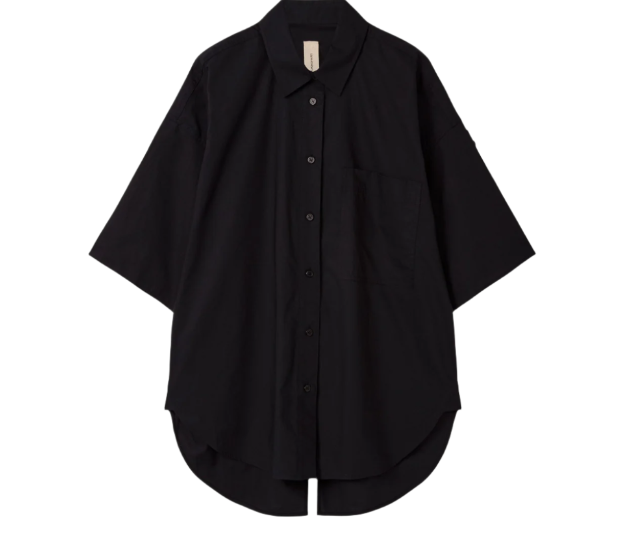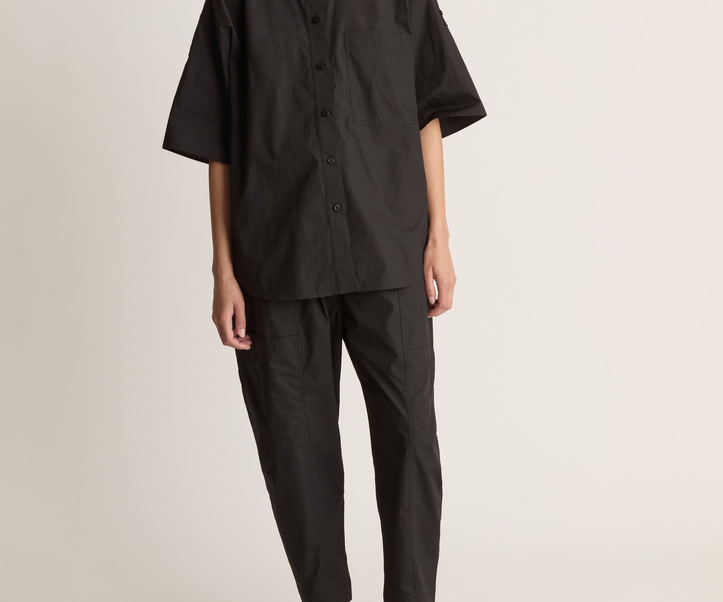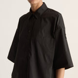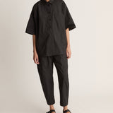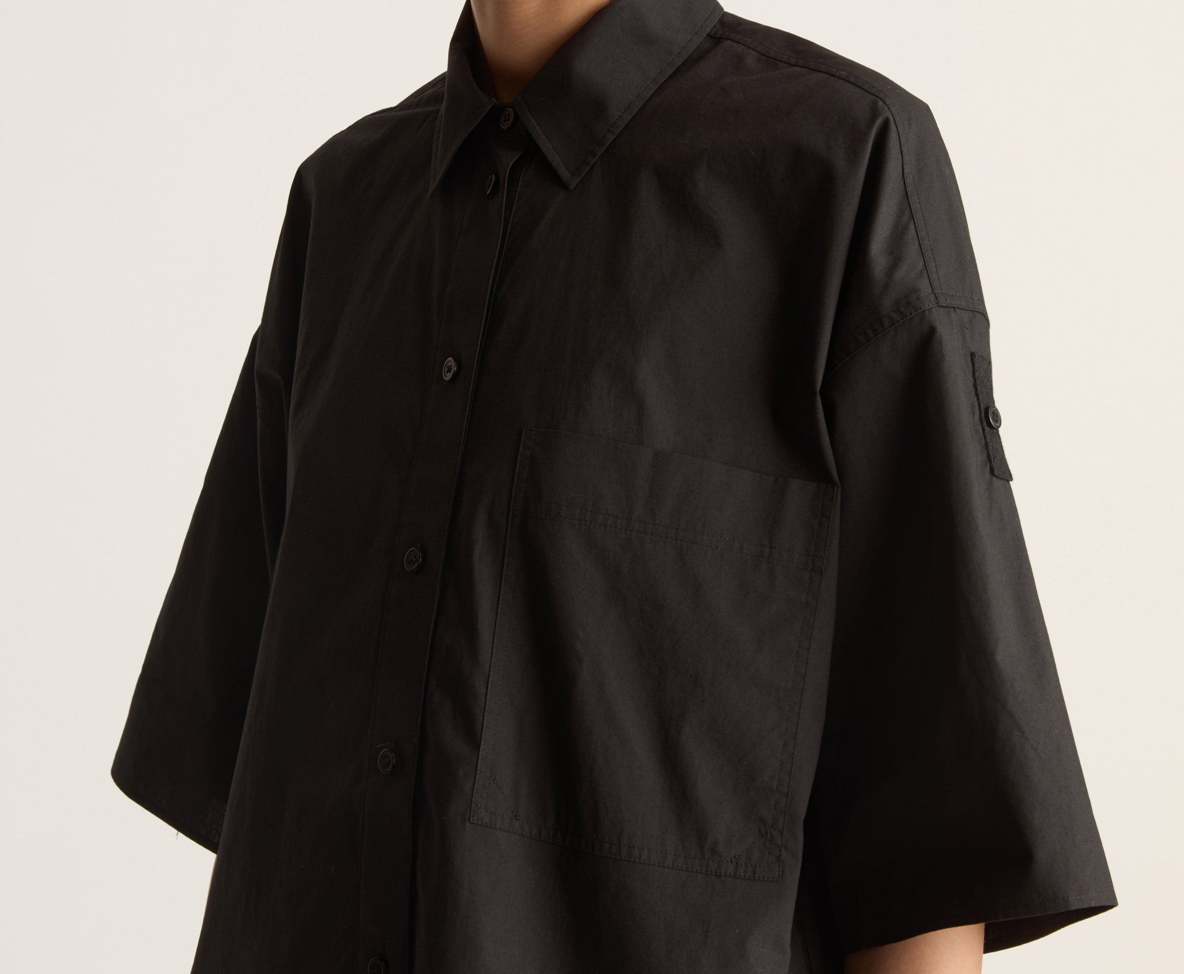 Introducing the LM Short Sleeve Shirt in Black, features a classic collar and a button-up front for a timeless look. The short sleeves and curved hem enhance its laid-back vibe, while the relaxed fit offers all-day comfort.