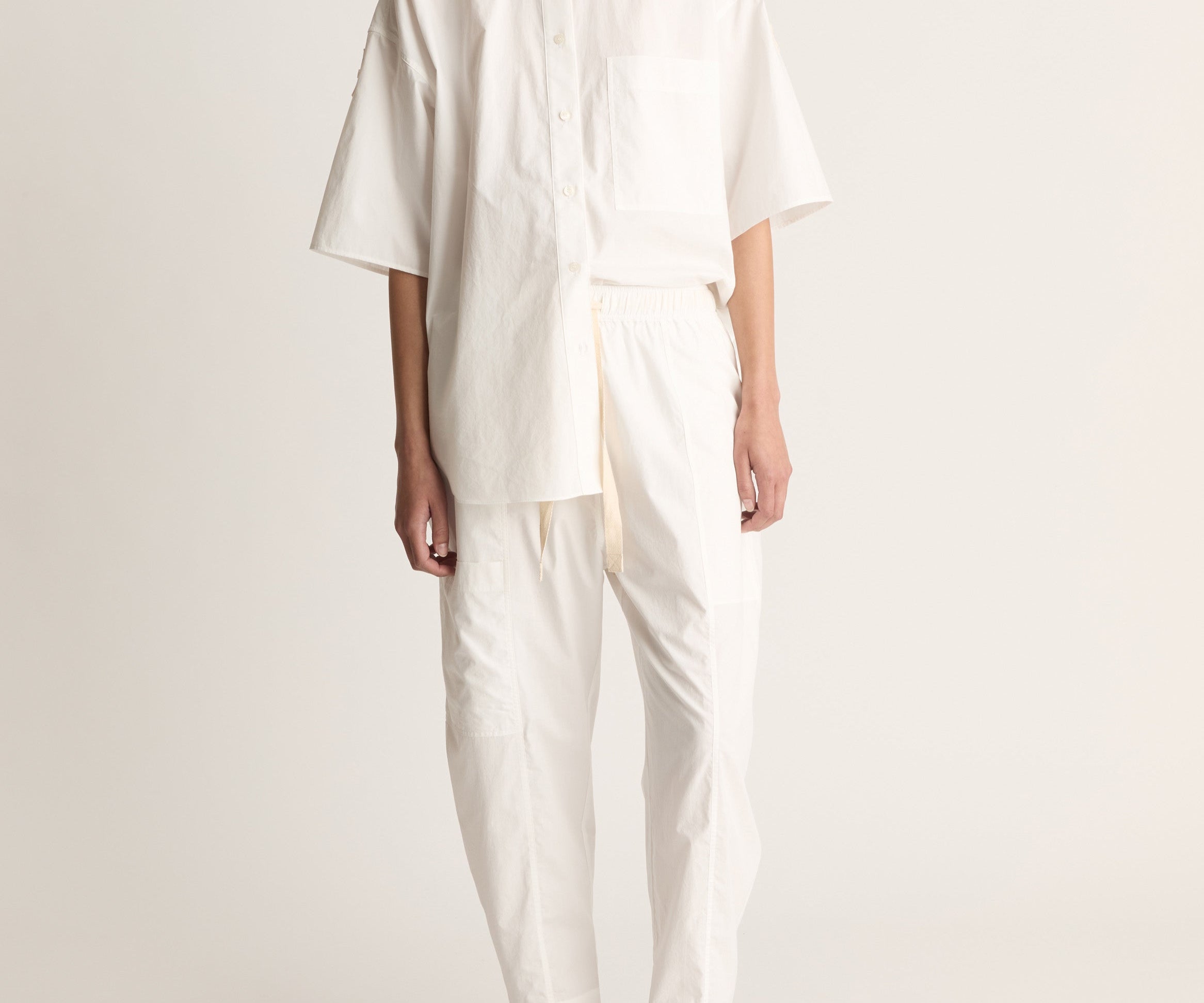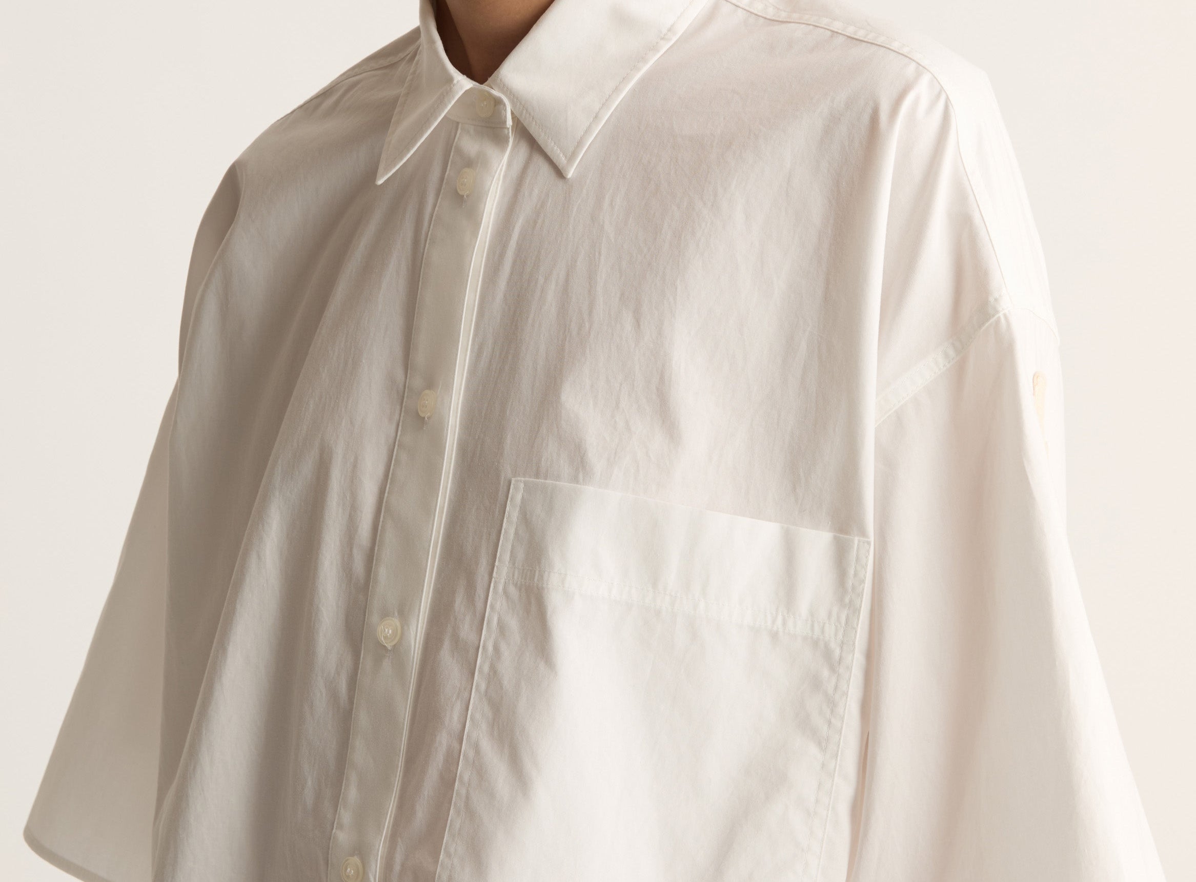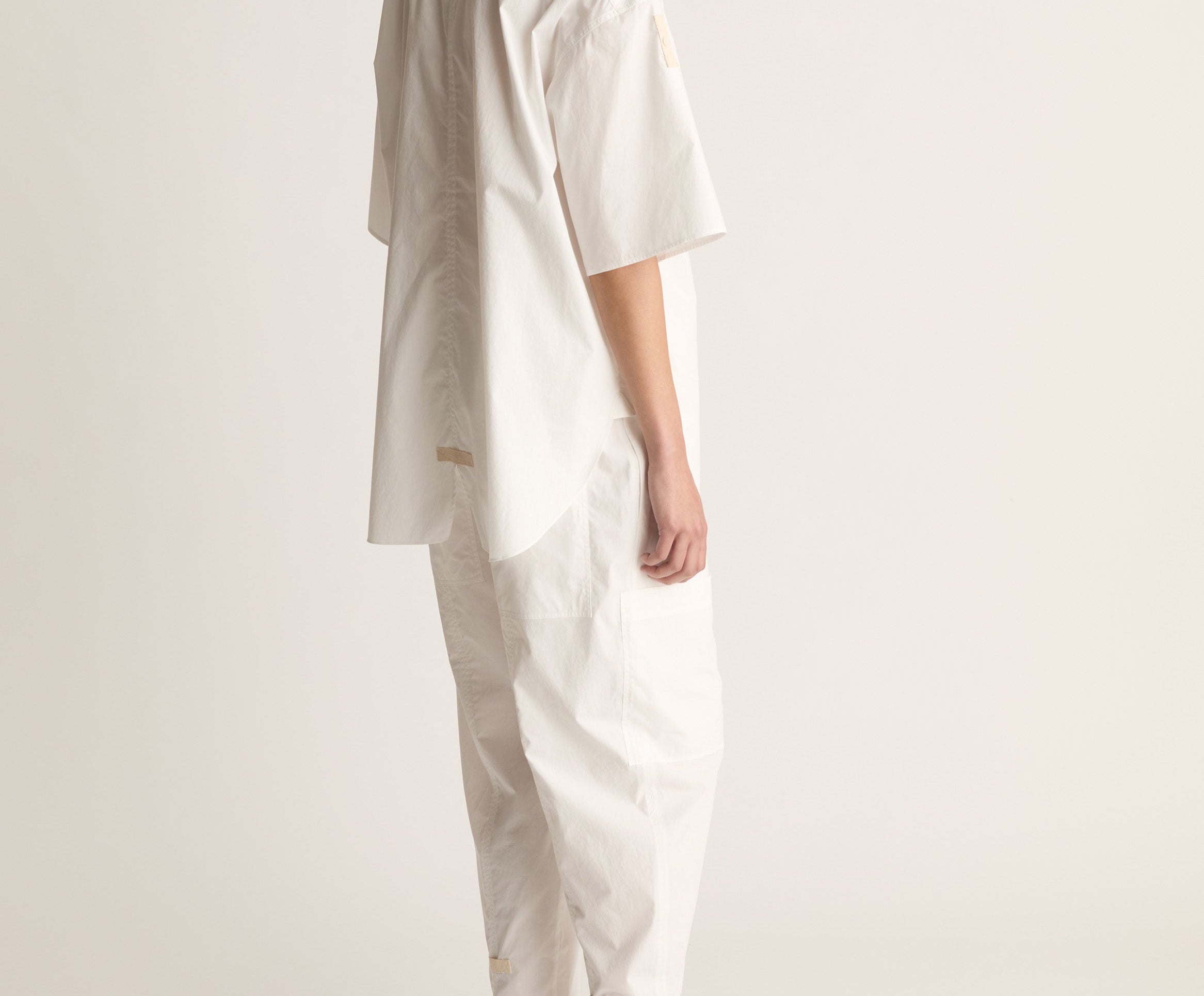 Introducing Lee Mathews Short Sleeve Shirt in Natural, a classic collar t-shirt, button-up in white hue. The short sleeves and curved hem offers a laid-back vibe, while the relaxed fit offers all-day comfort.