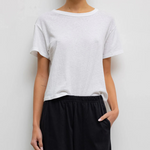 Introducing Laura Margo Tee in White crafted from lightweight cotton for an even softer feel. This timeless crewneck, short sleeve t-shirt strikes the perfect balance between a tailored and relaxed fit, making it the ultimate year-round, everyday basic that pairs effortlessly with any wardrobe.
