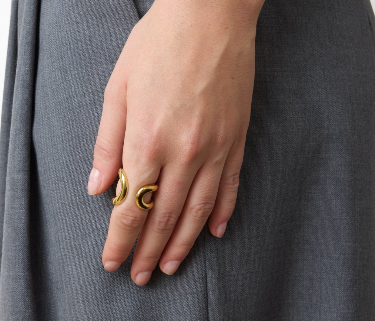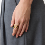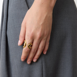 Introducing Lie Studio's Alma Ring in Gold, the signature piece of this collection, is crafted from 18 carat gold-plated sterling silver and showcases a beautifully curvaceous design that radiates timeless elegance. With its versatile silhouette, this ring seamlessly transitions from casual to formal settings.