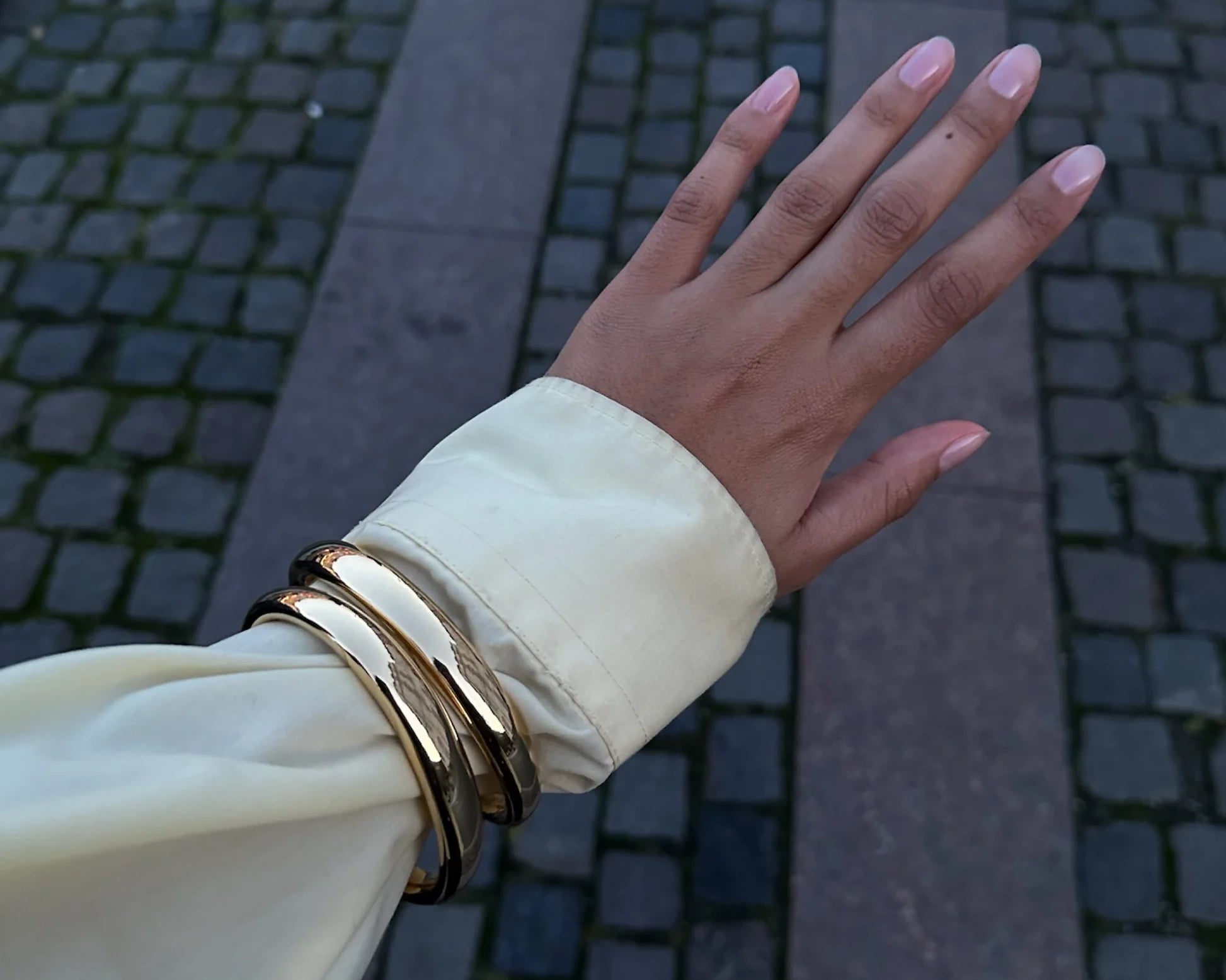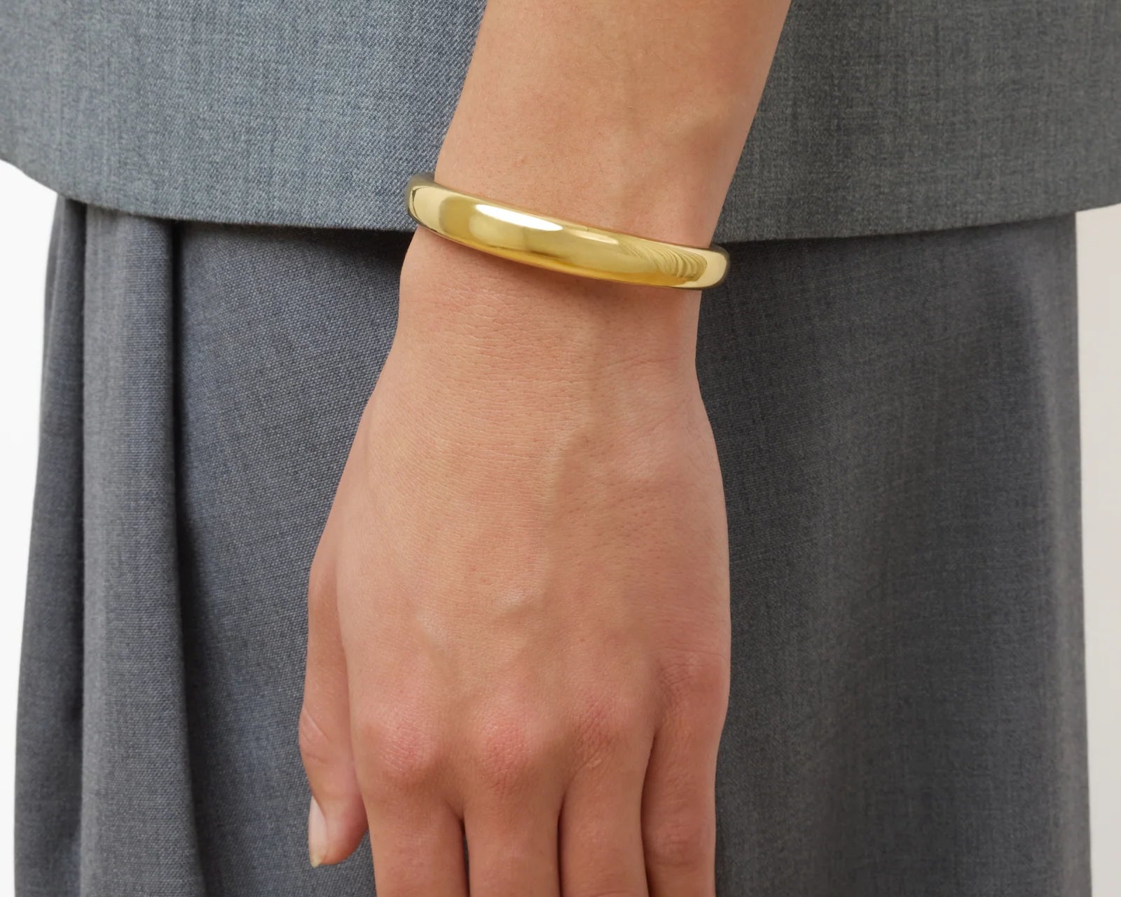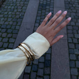 The Amanda Bracelet is a timeless and classic bangle crafted from 18-carat gold-plated brass. This elegant accessory elevates any attire, suitable for every season and setting.