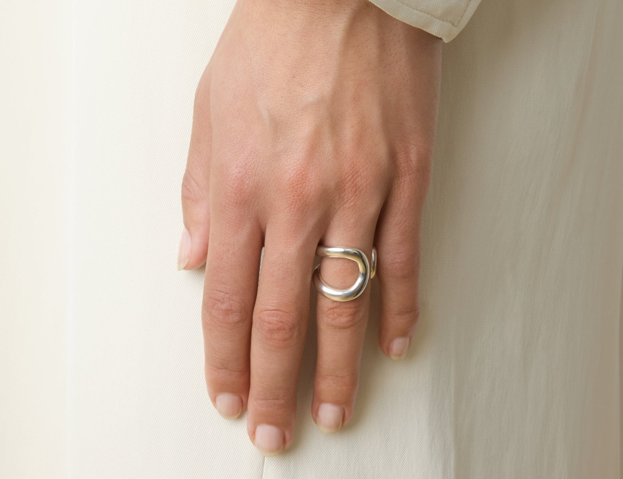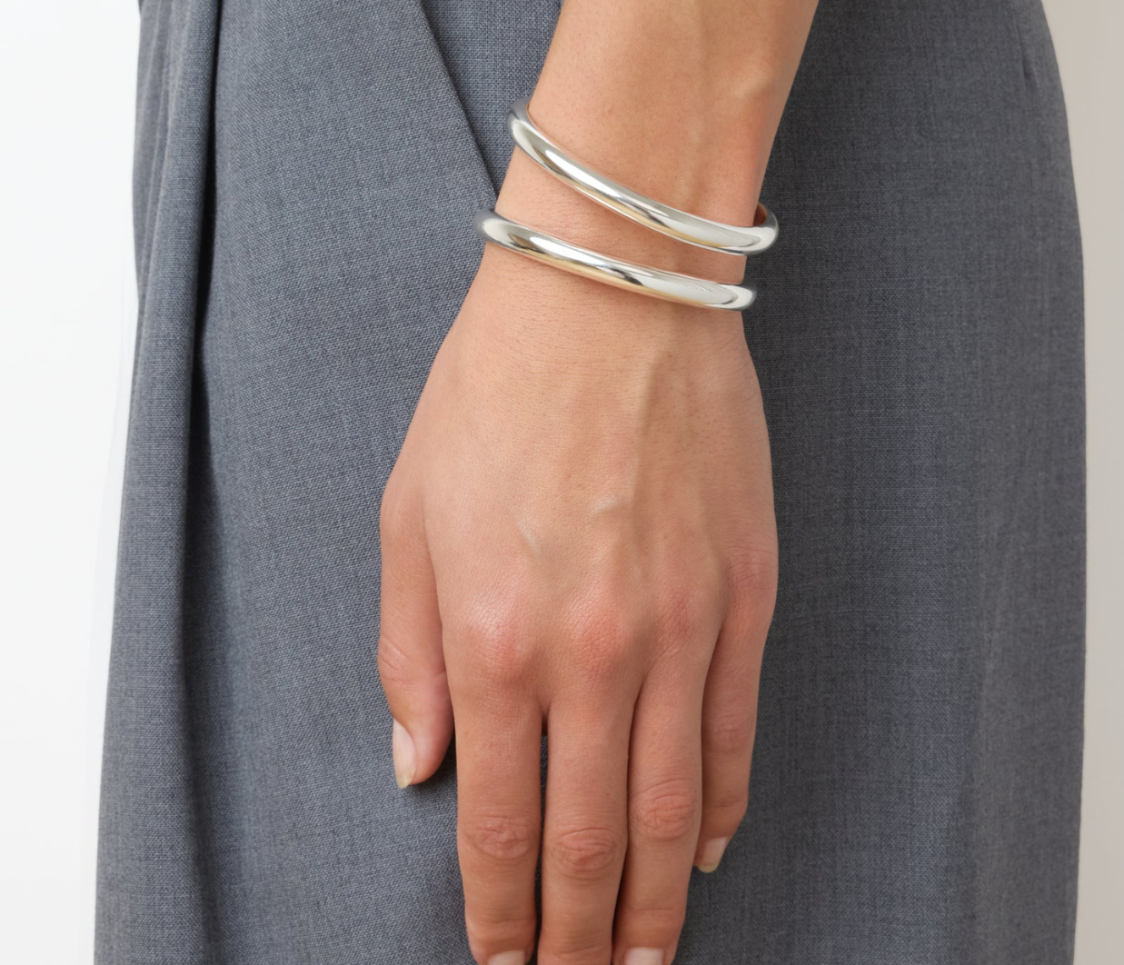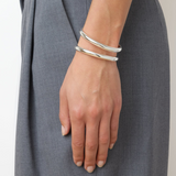 Introducing the Lie Studio Maggie Bracelet in Silver - a refined piece that embodies curvy elegance. Crafted from 925 sterling silver-plated brass, which makes it ideal for layering and offering a sophisticated touch to any outfit. Depending on how you wear it and turn it, The Maggie Bracelet can have a versatile look.