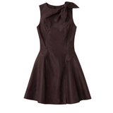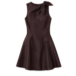 Introducing Lovaan's Arabella Mini Dress in Cacao, a mini dress silhouette in brown cacao. Designed with a cutesy, playful, yet refined silhouette, the Arabella dress features a softly flared hemline and statement bow detail at the shoulder. Perfect dress for day-to-night dressing.