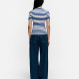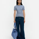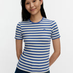 Kukkea Tasaraita Unikko Kioski T-shirt in Blue Off White