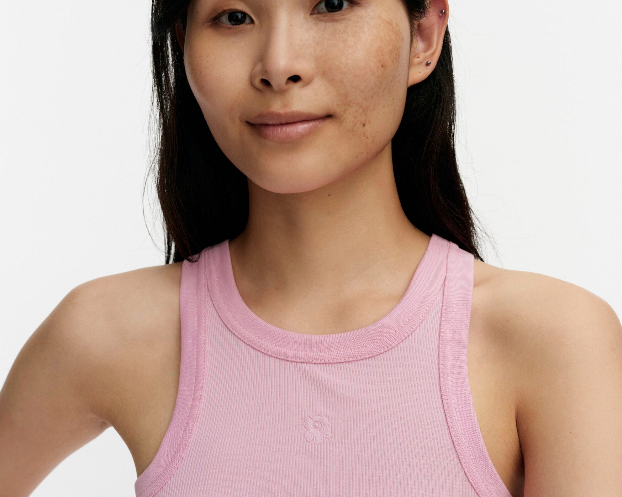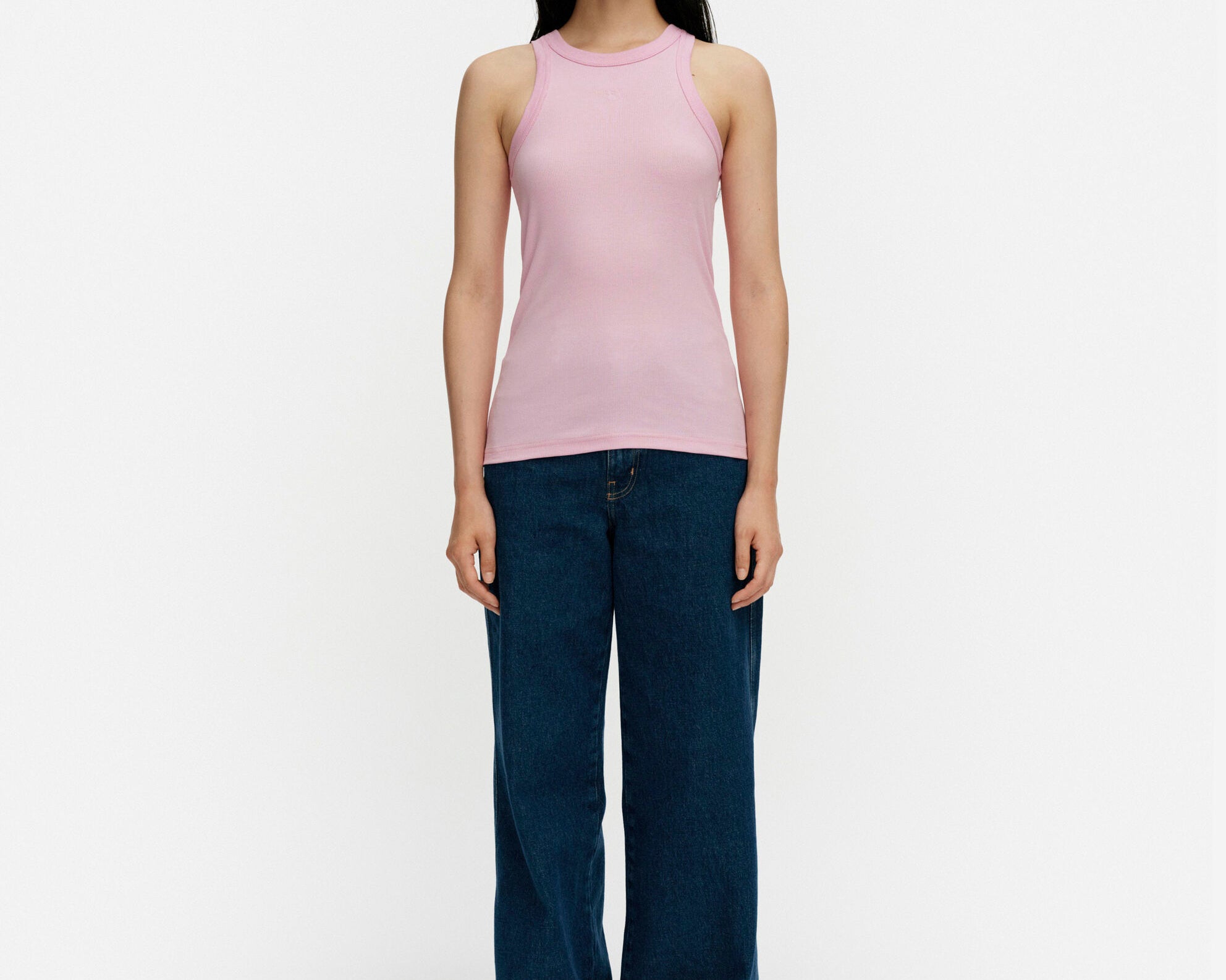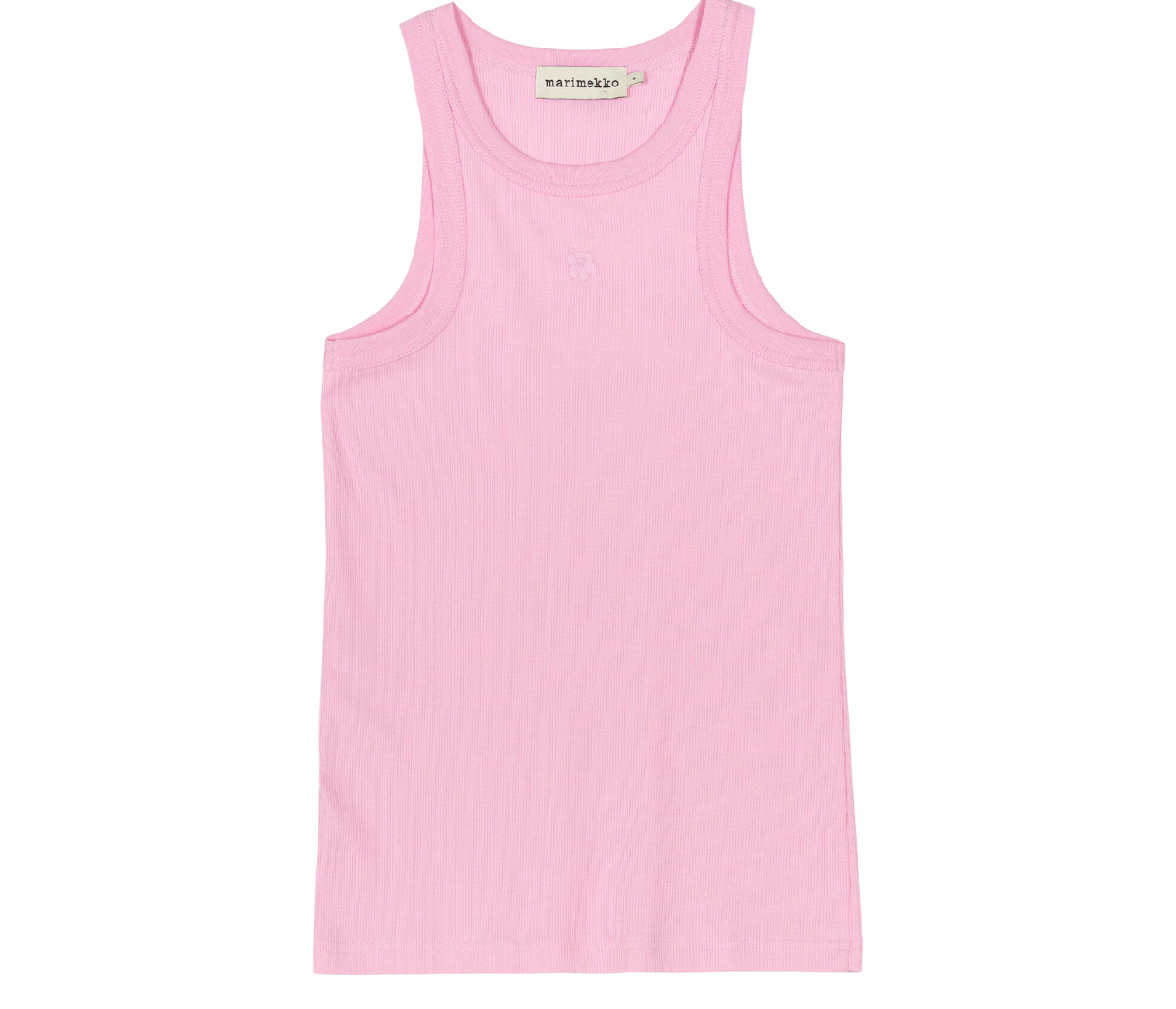 The Kupla ribbed top has a slim fit and a small embroidered Unikko flower on the chest. The U-neckline and armholes are finished with a ribbed edge.