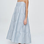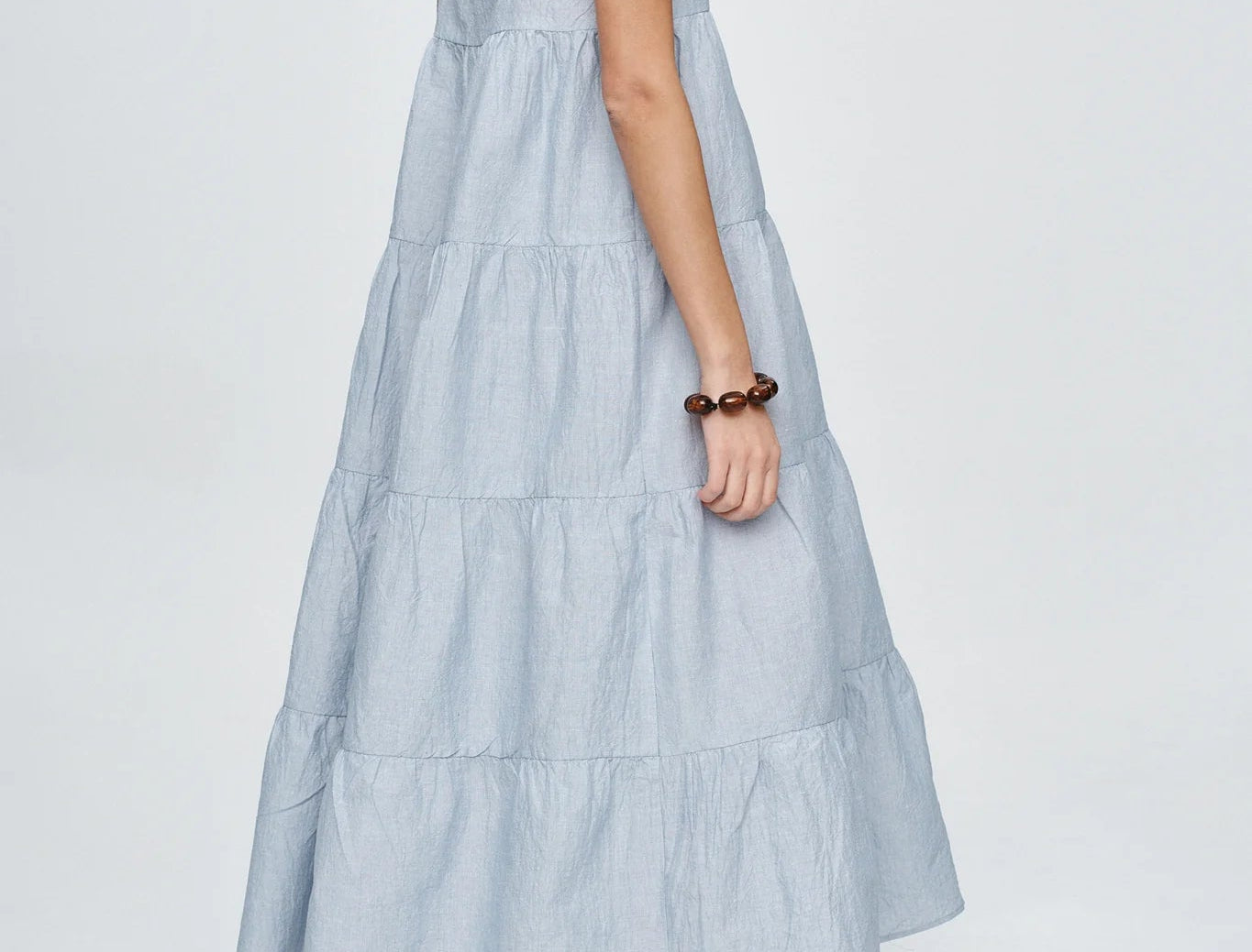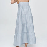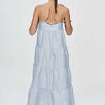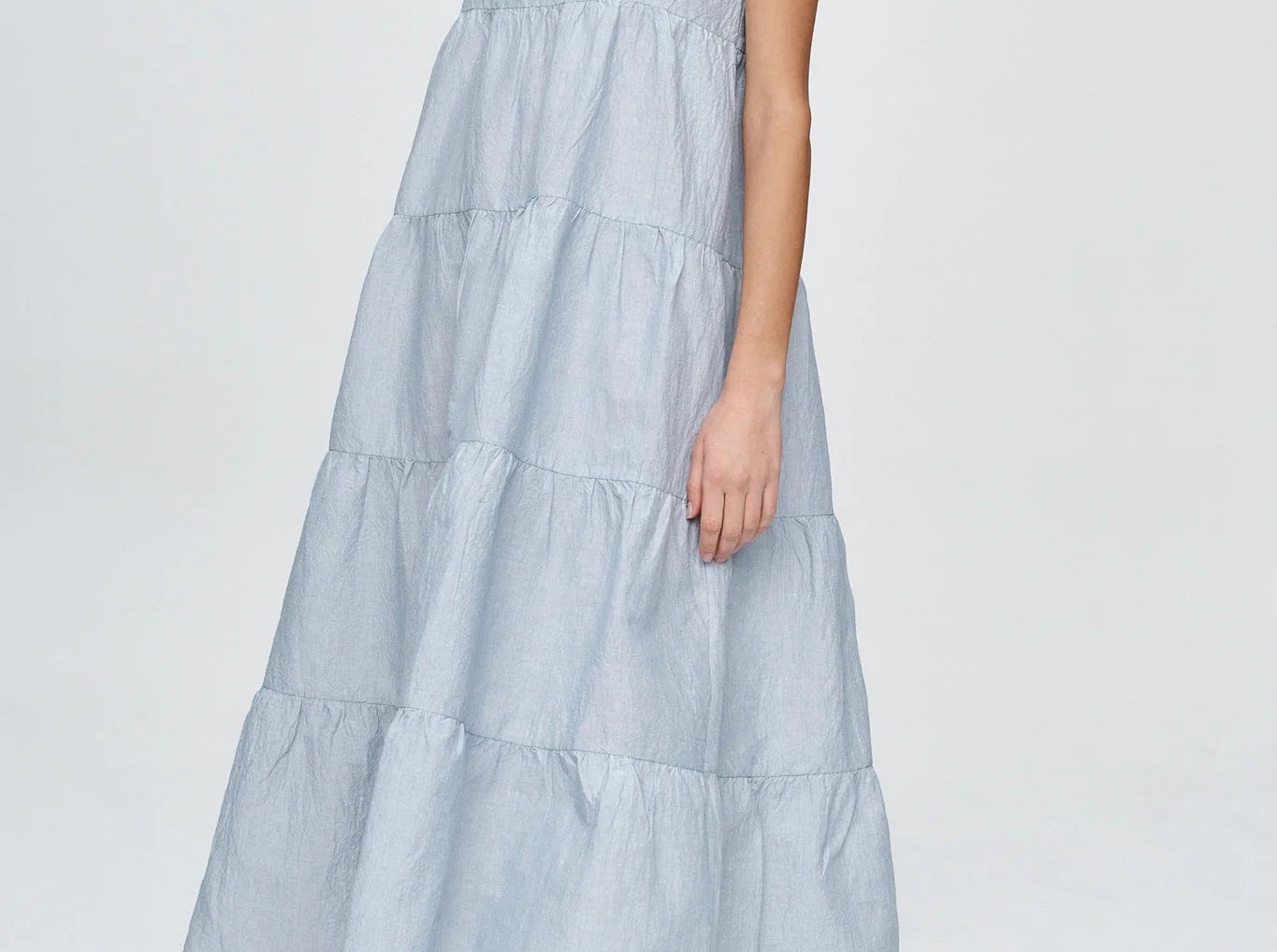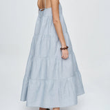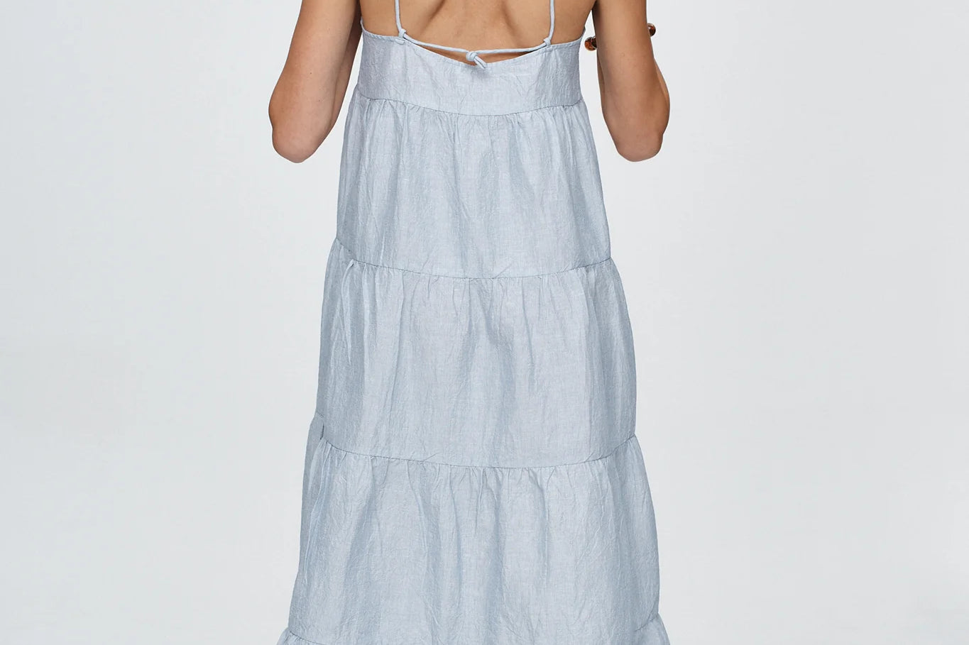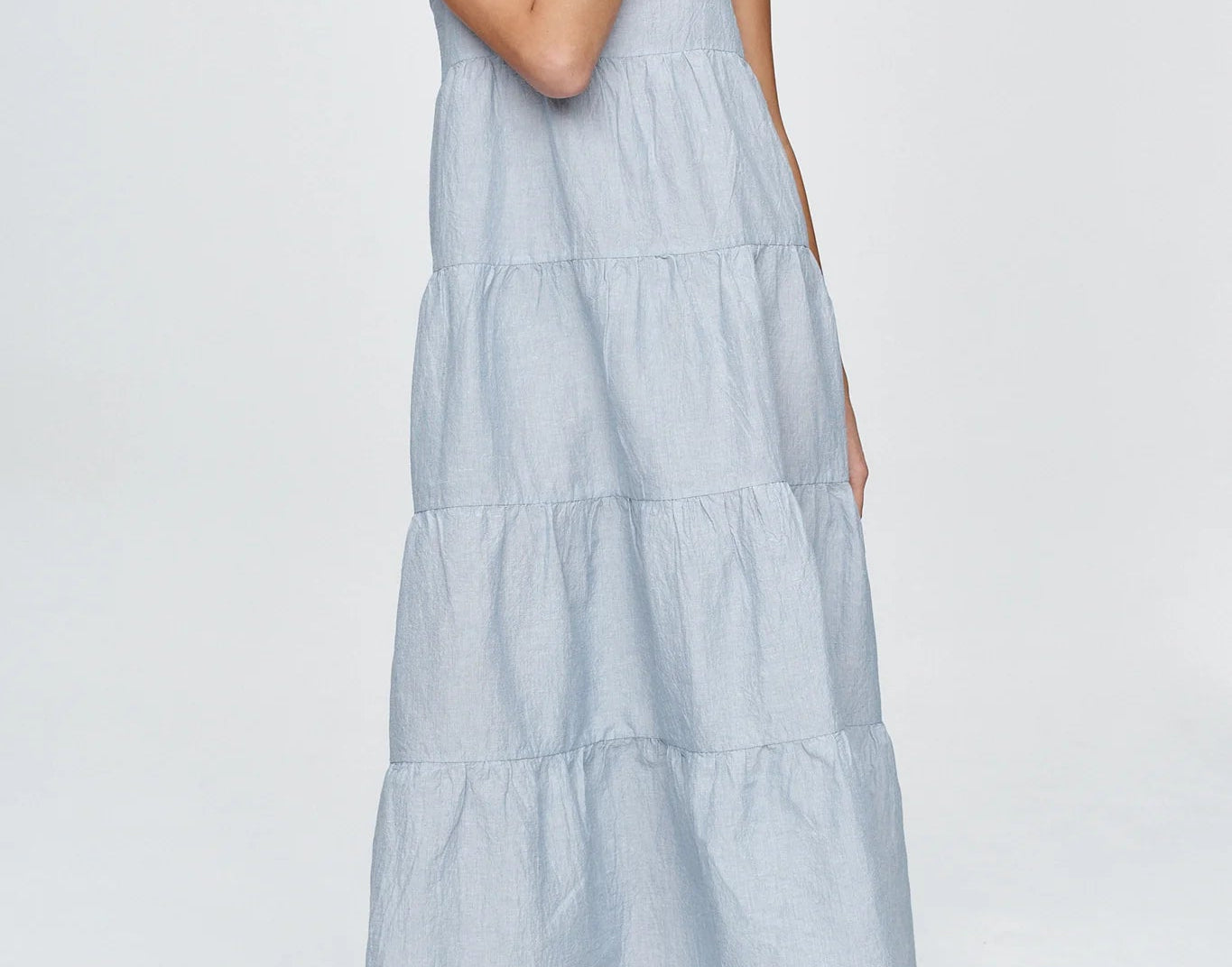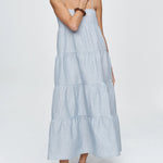 Introducing Marle’s Ophelia Dress in Bleu Stripe, a relaxed thin-strap maxi dress in a baby blue stripe hue. Designed with a square neckline, thin adjustable straps, and softly tiered panels, the Ophelia blue maxi dress drapes effortlessly over the body for a relaxed yet elevated silhouette. Lightweight and breathable, it’s the perfect summer dress for warm days and relaxed occasions alike.