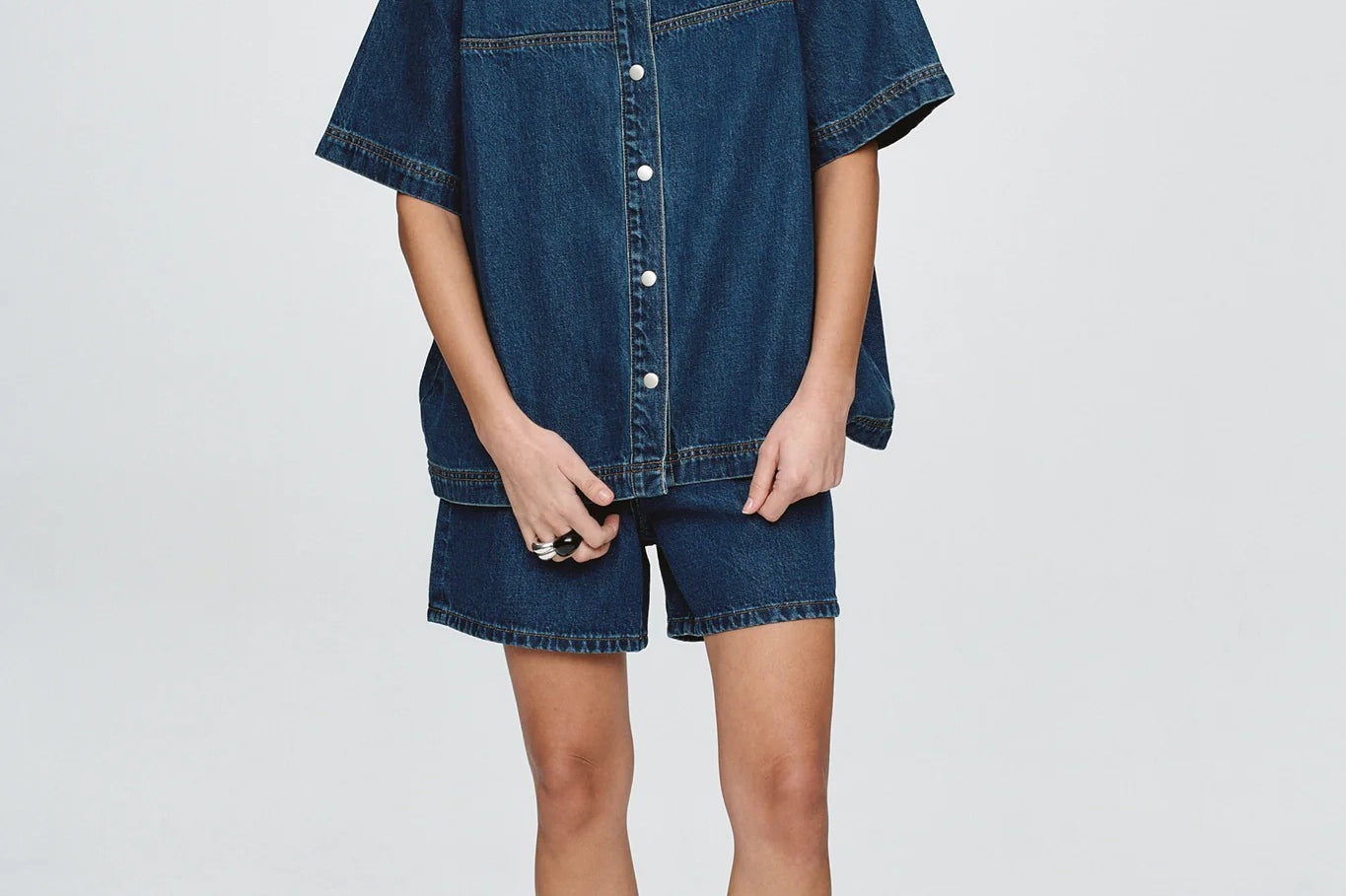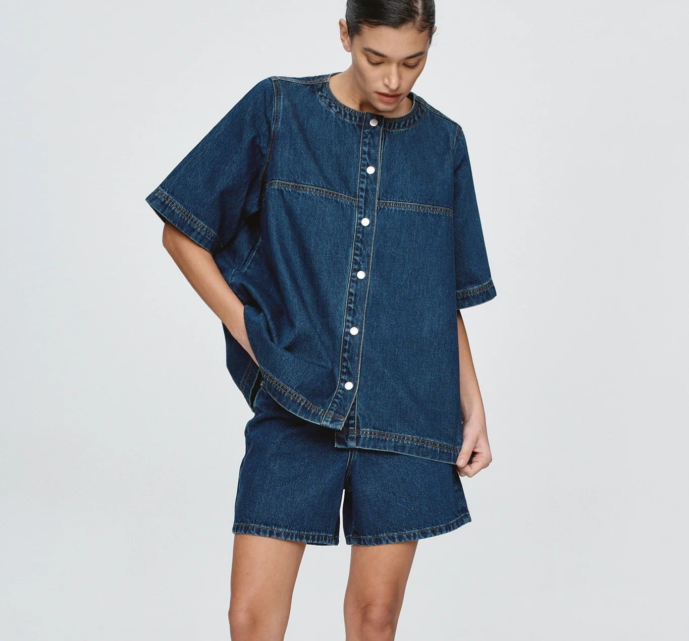 - Relaxed boxy silhouette with dropped shoulders