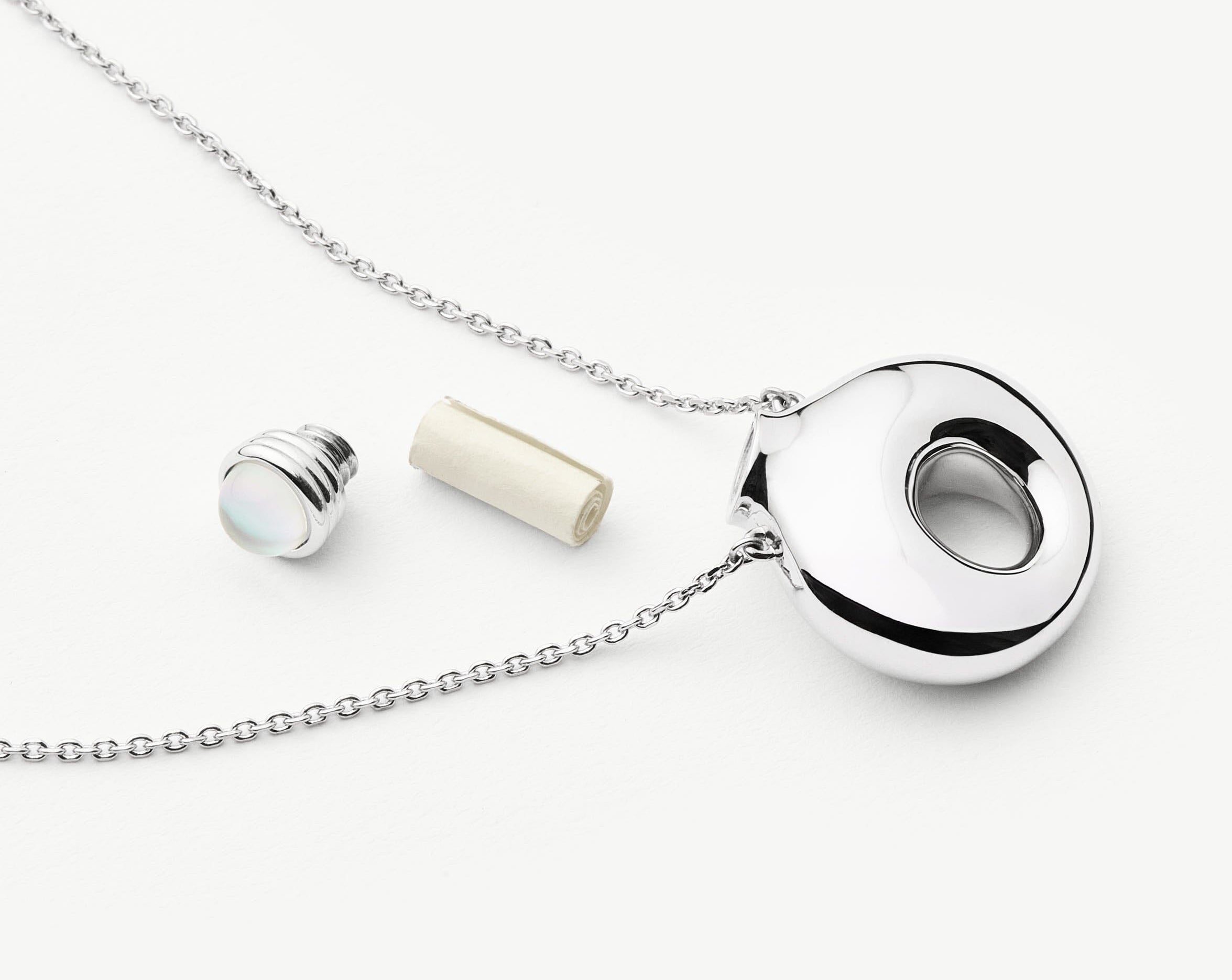 Donut Bottle Pendant Necklace with Mother of Pearl in Silver