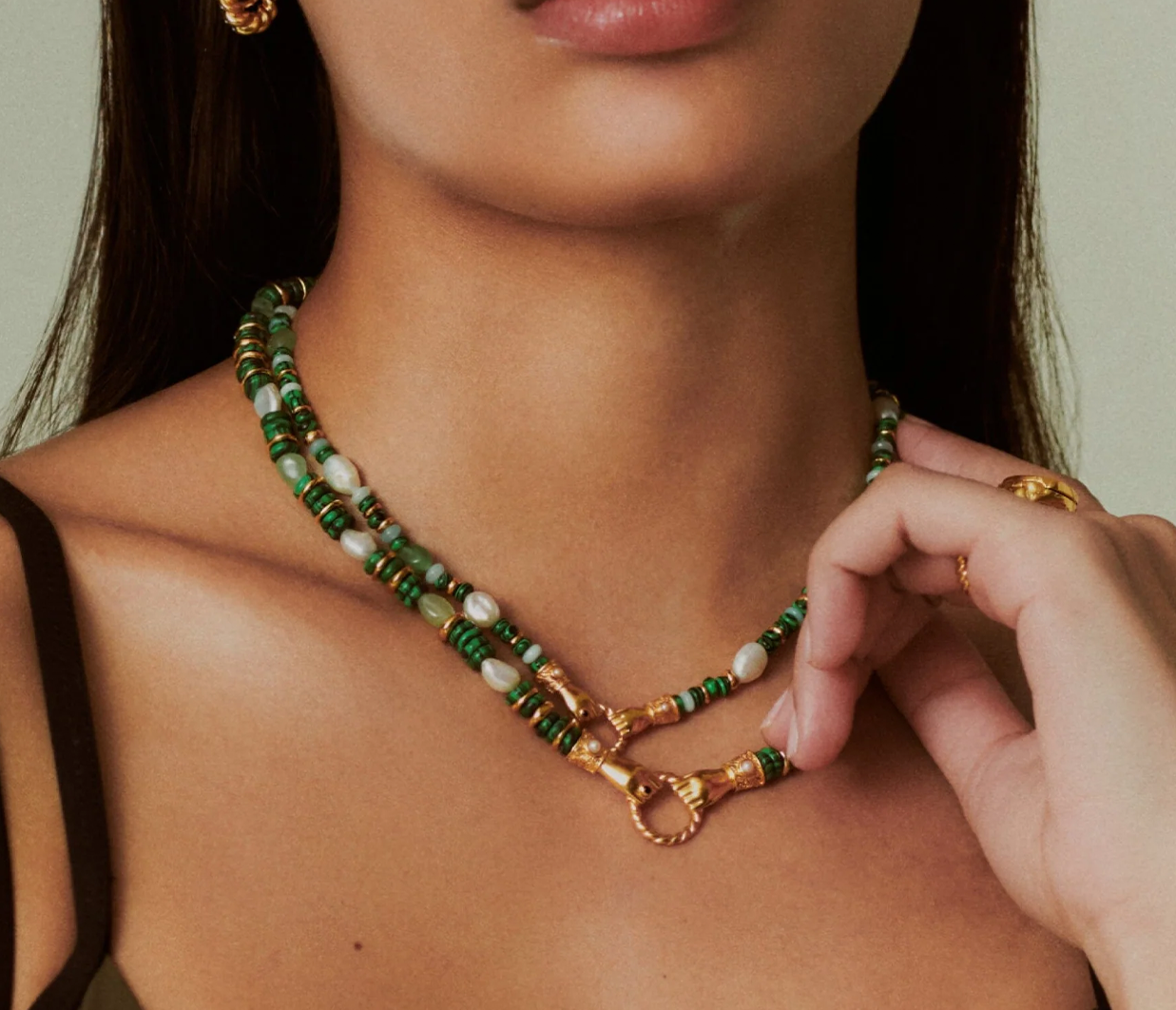 Harris Reed X Missoma In Good Hands Beaded Chunky Necklace in Gold and Green