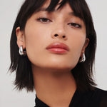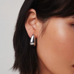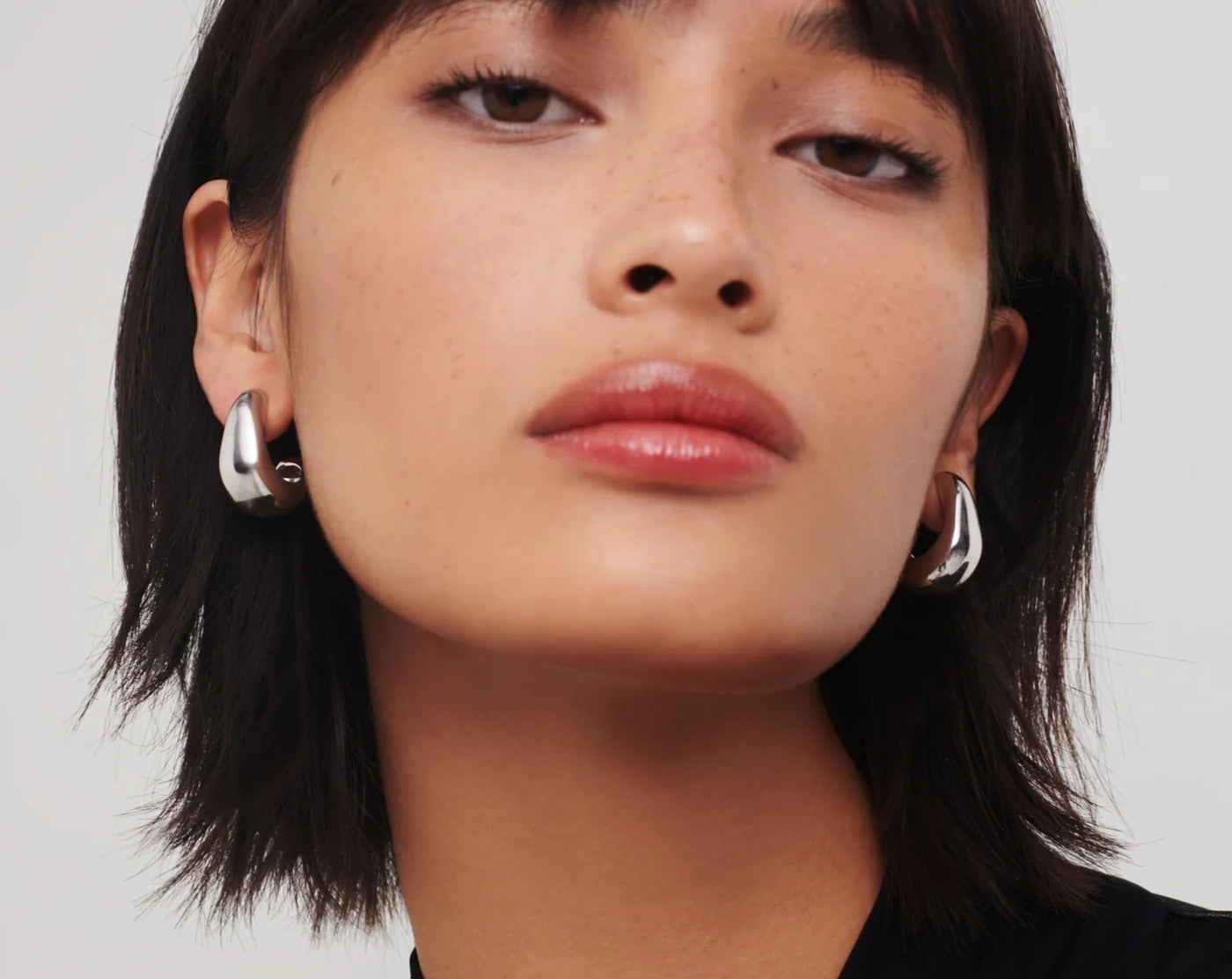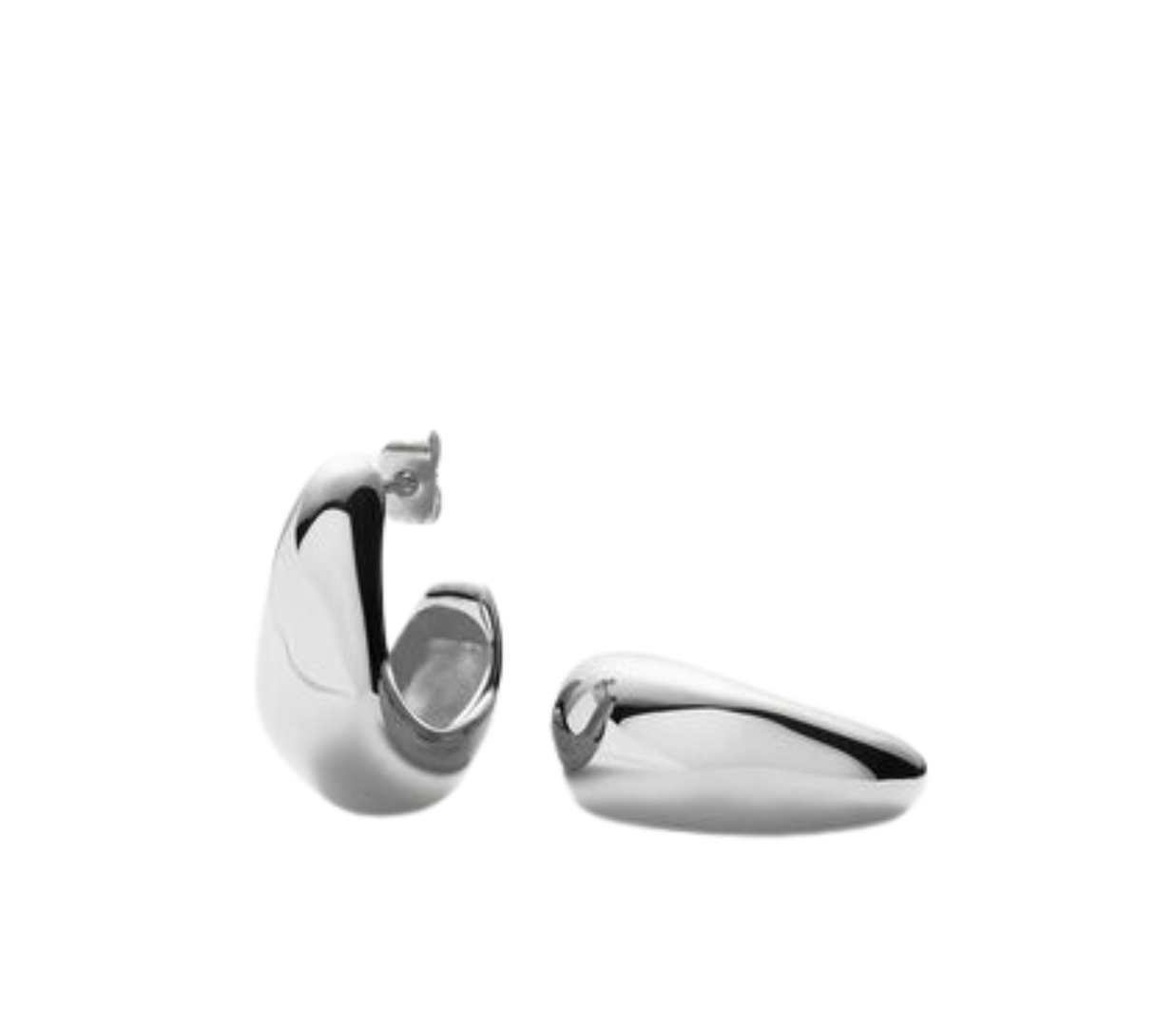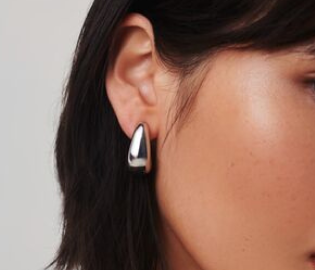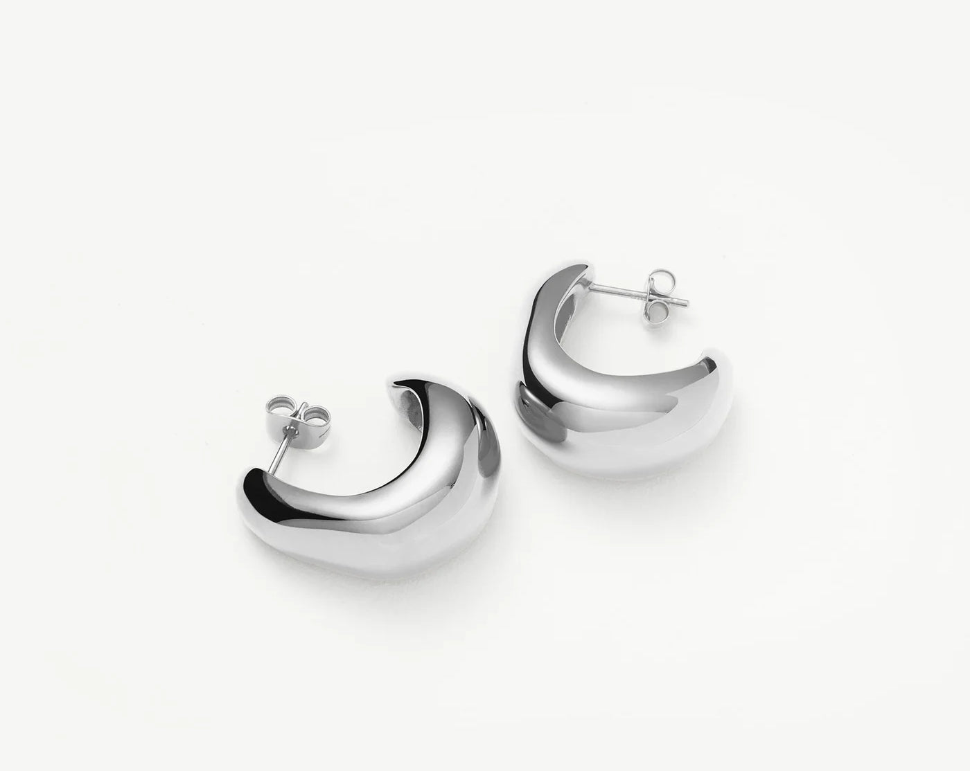 Introducing the Organic Dome Hoop Earring in Silver a sculptural medium-sized chunky hoops, designed with an organic-inspired domed shape. Handcrafted for everyday wear, these earrings are exceptionally lightweight and boast a high-shine finish for added elegance.