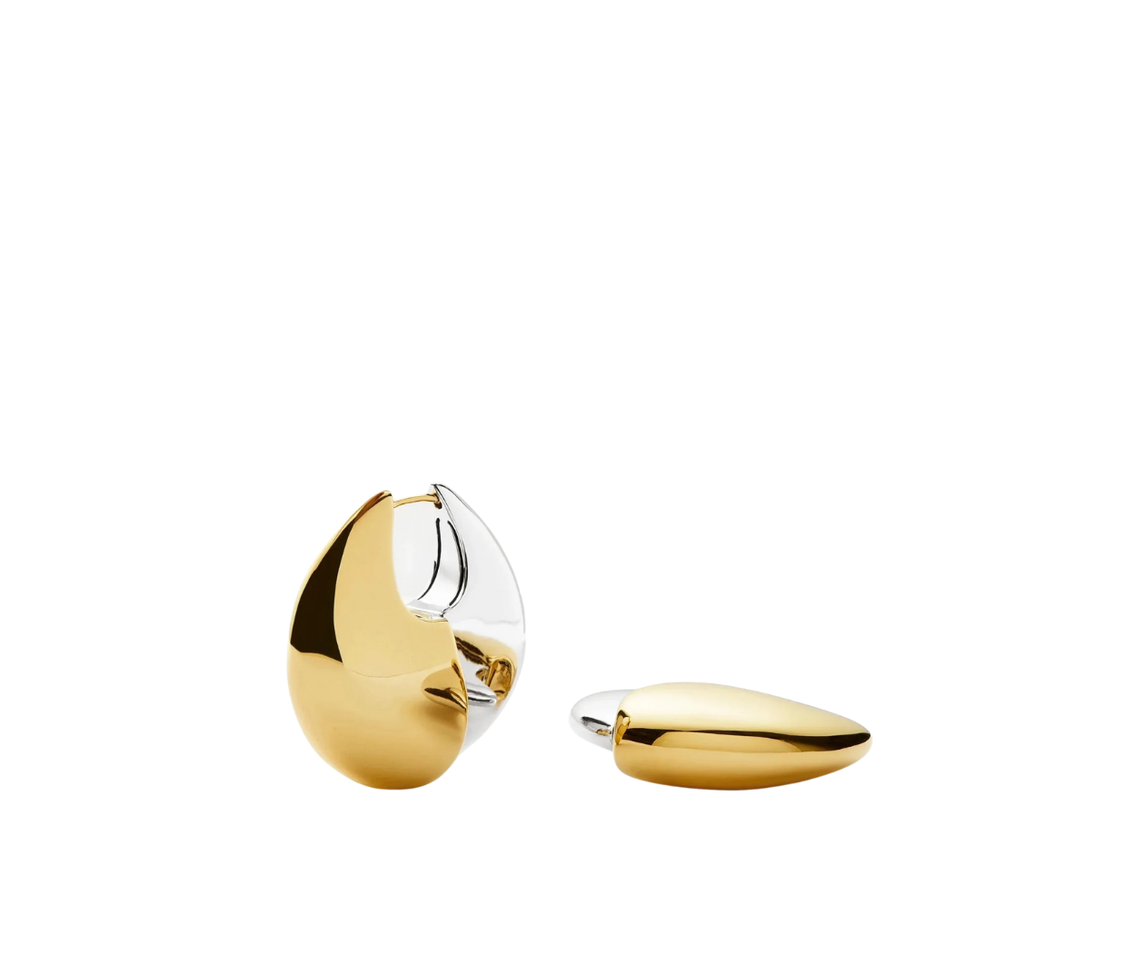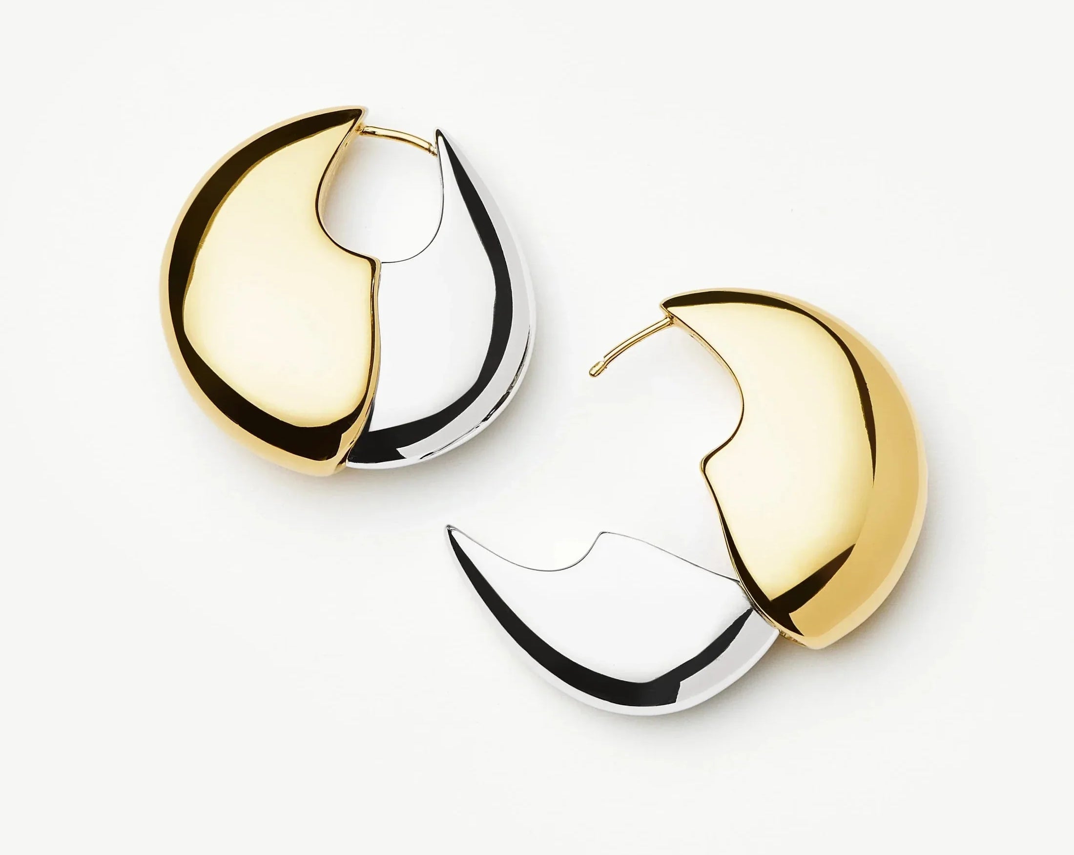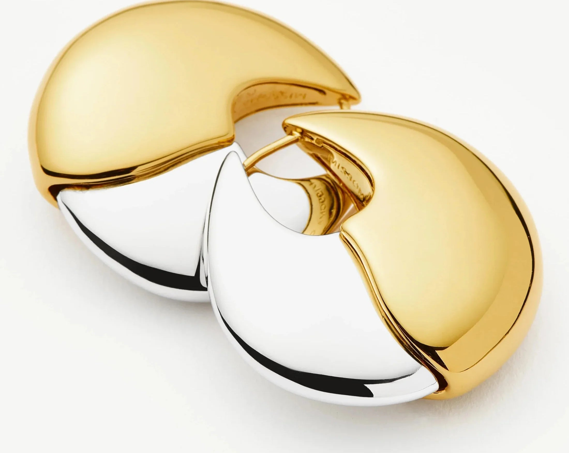 Introducing Missoma's Sculptural Pebble Large Hoop Earrings inspired by sculptural shapes, these mixed metal pebble-shaped medium hoop earrings can be worn with either silver or gold side facing forward, giving you two pairs of hoops in one. Style solo or pair with studs for an instant ear stack.