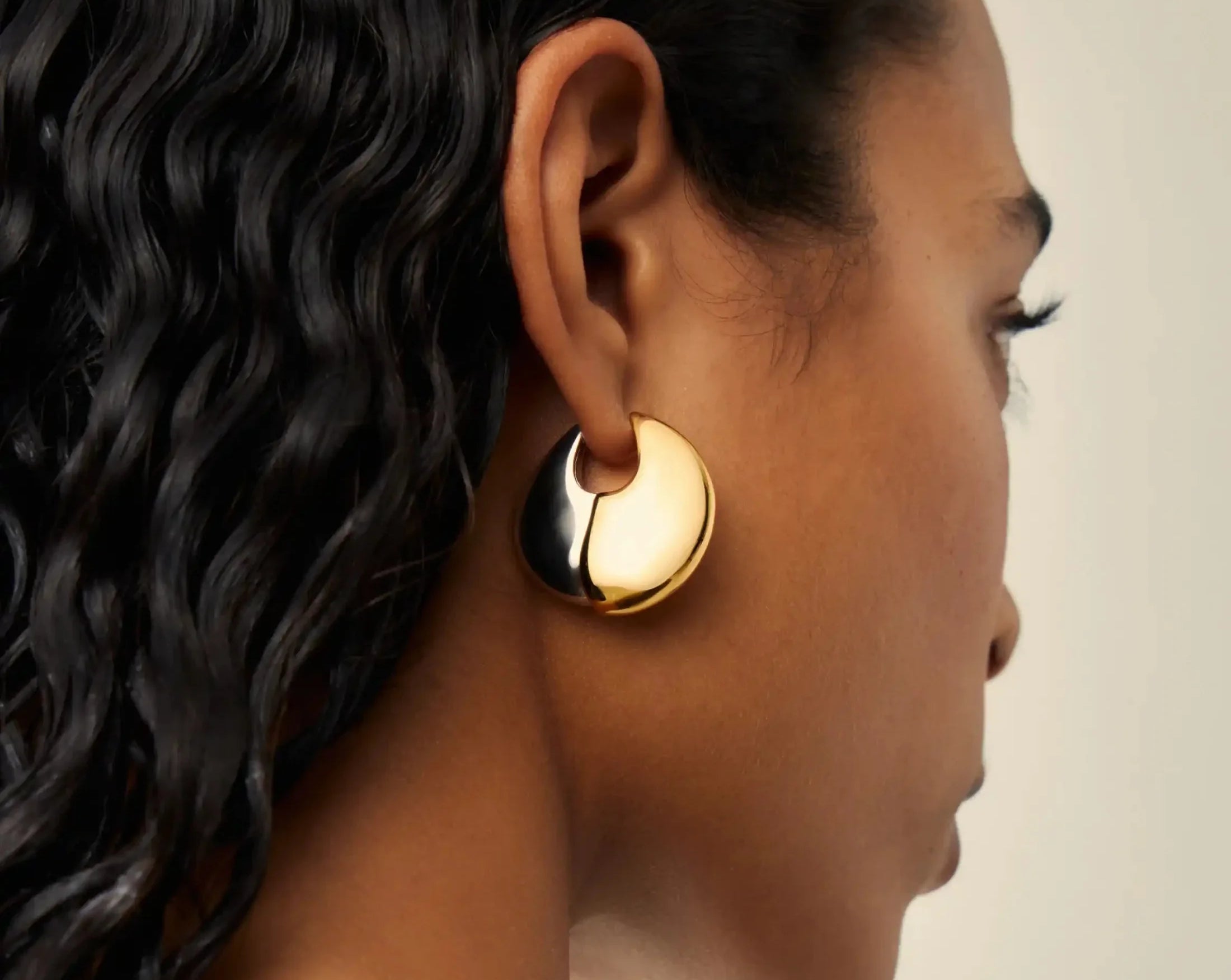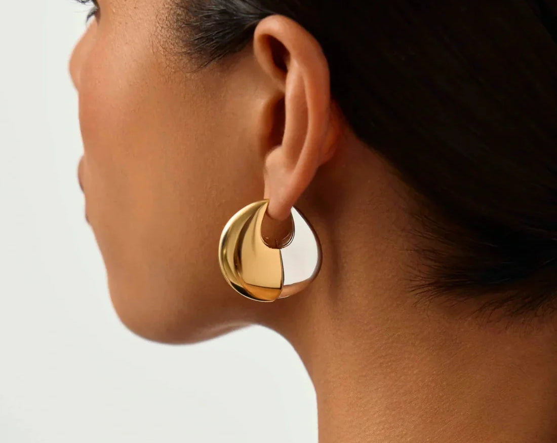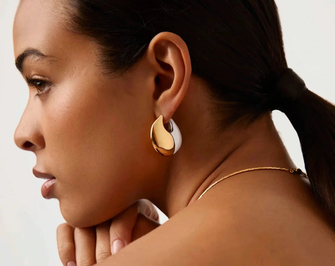 Introducing Missoma's Sculptural Pebble Large Hoop Earrings inspired by sculptural shapes, these mixed metal pebble-shaped medium hoop earrings can be worn with either silver or gold side facing forward, giving you two pairs of hoops in one. Style solo or pair with studs for an instant ear stack.