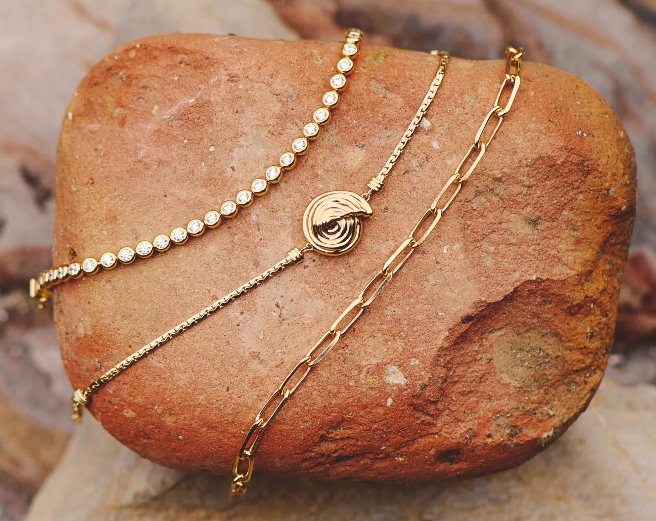 Introducing Missoma's Spiral Cobra Chain Gold Bracelet, a classic addition to your jewellery collection, this cobra chain bracelet features a small gold spiral element. Perfect to wear solo in the daytime or layer for a statement evening look.