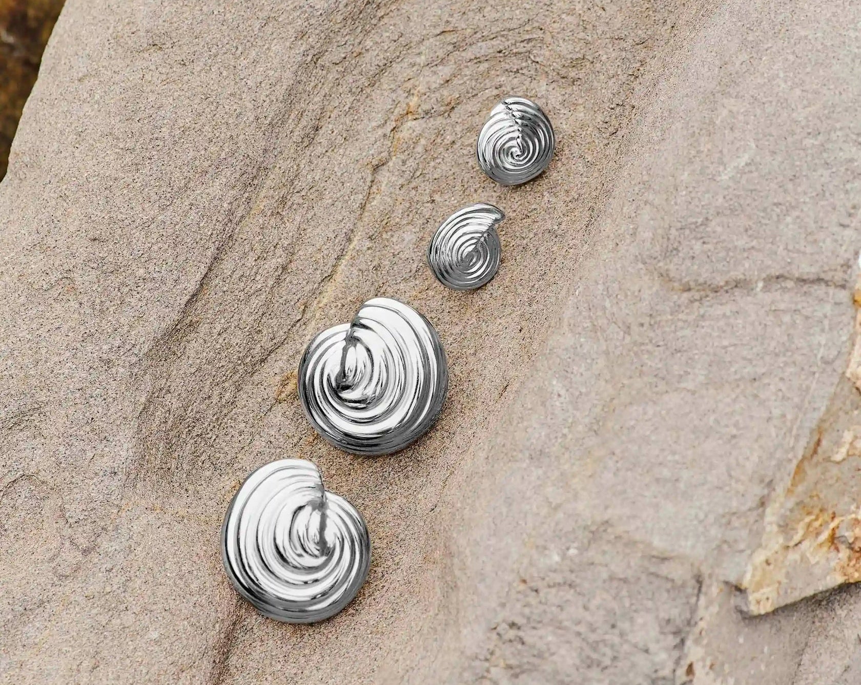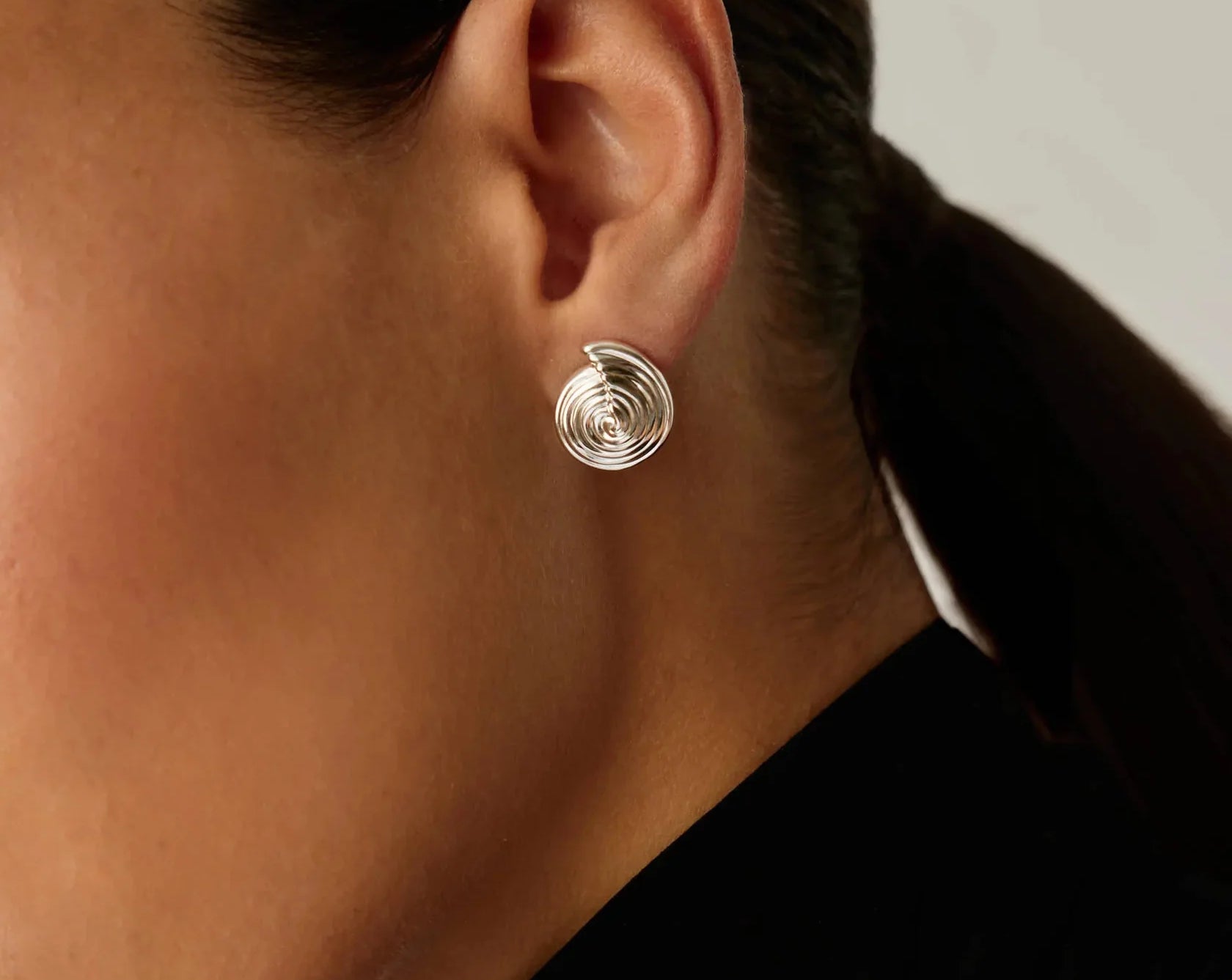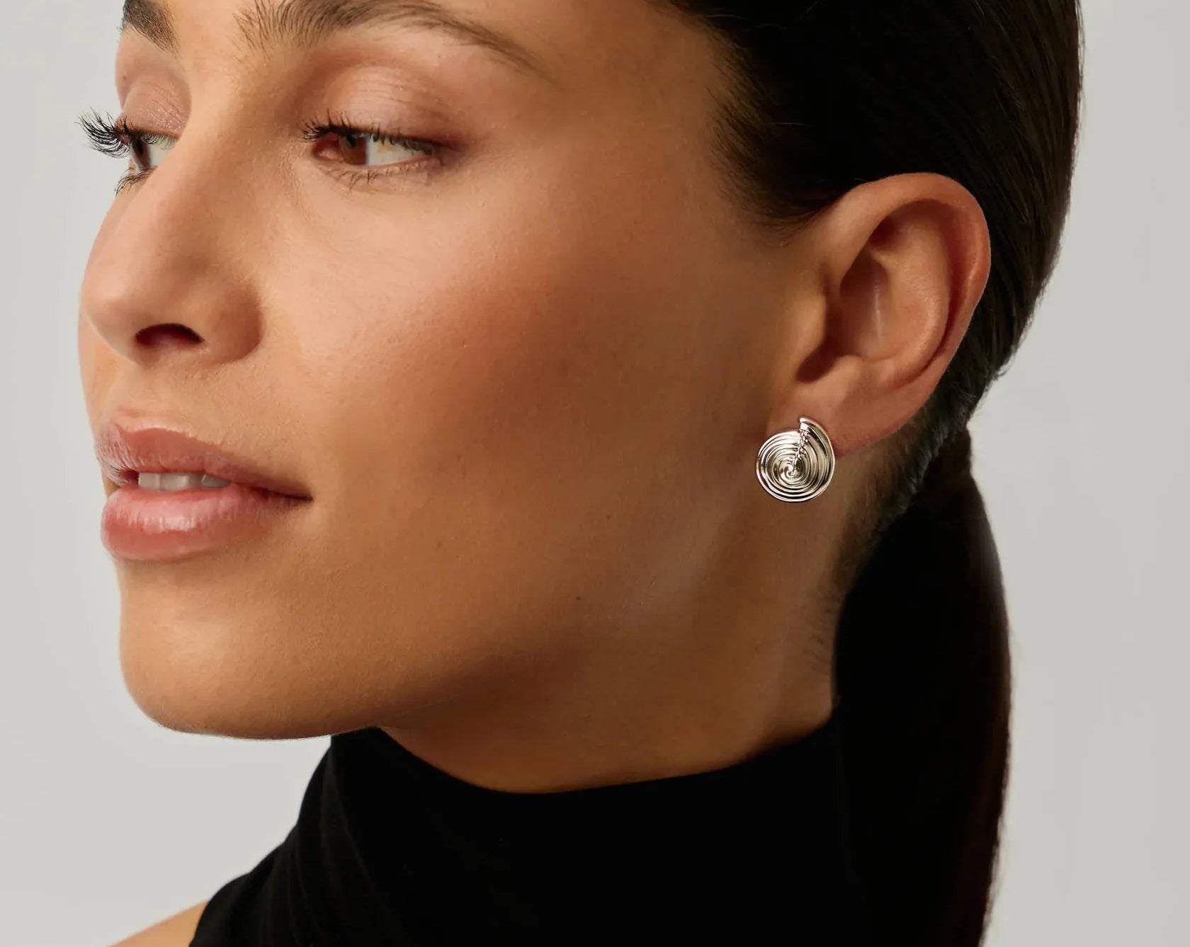 Introducing Missoma's Spiral Small Stud Silver Earrings, these oceanic-inspired stud earrings feature a small silver spiral element making them perfect for everyday styling.