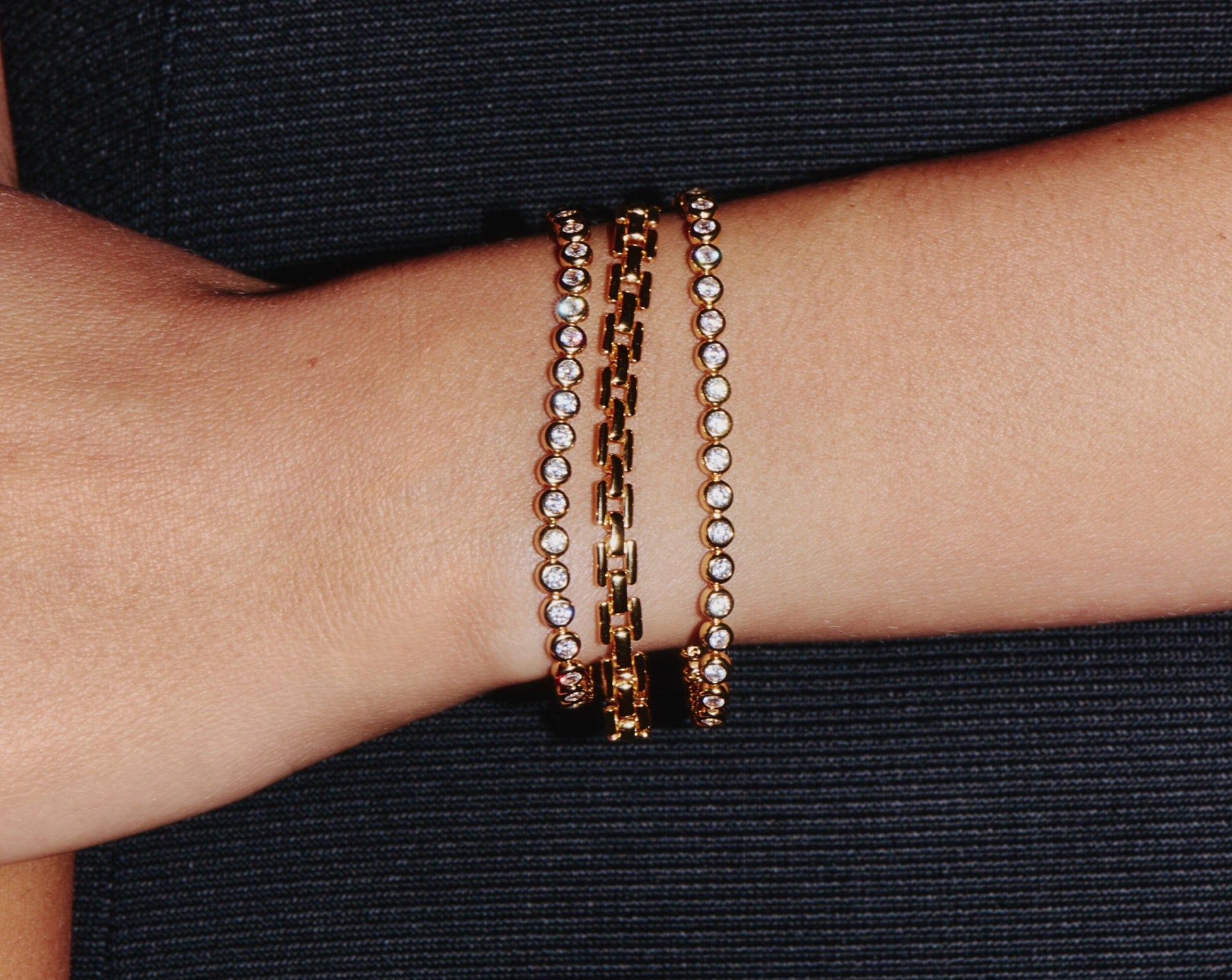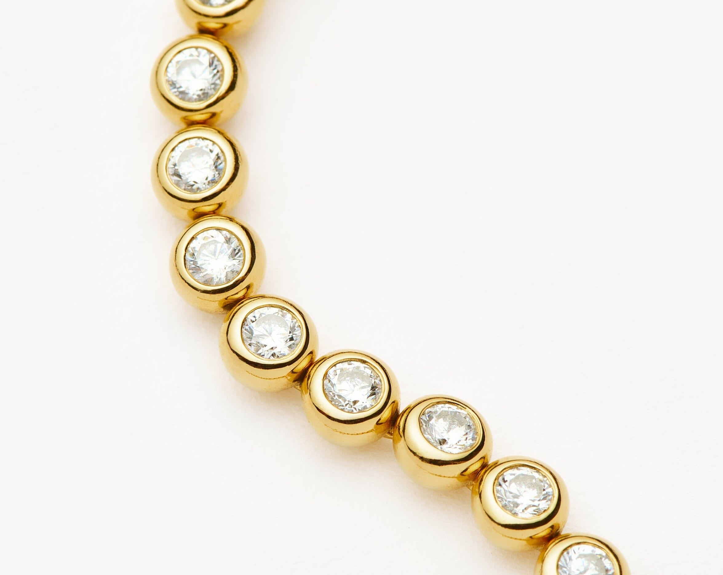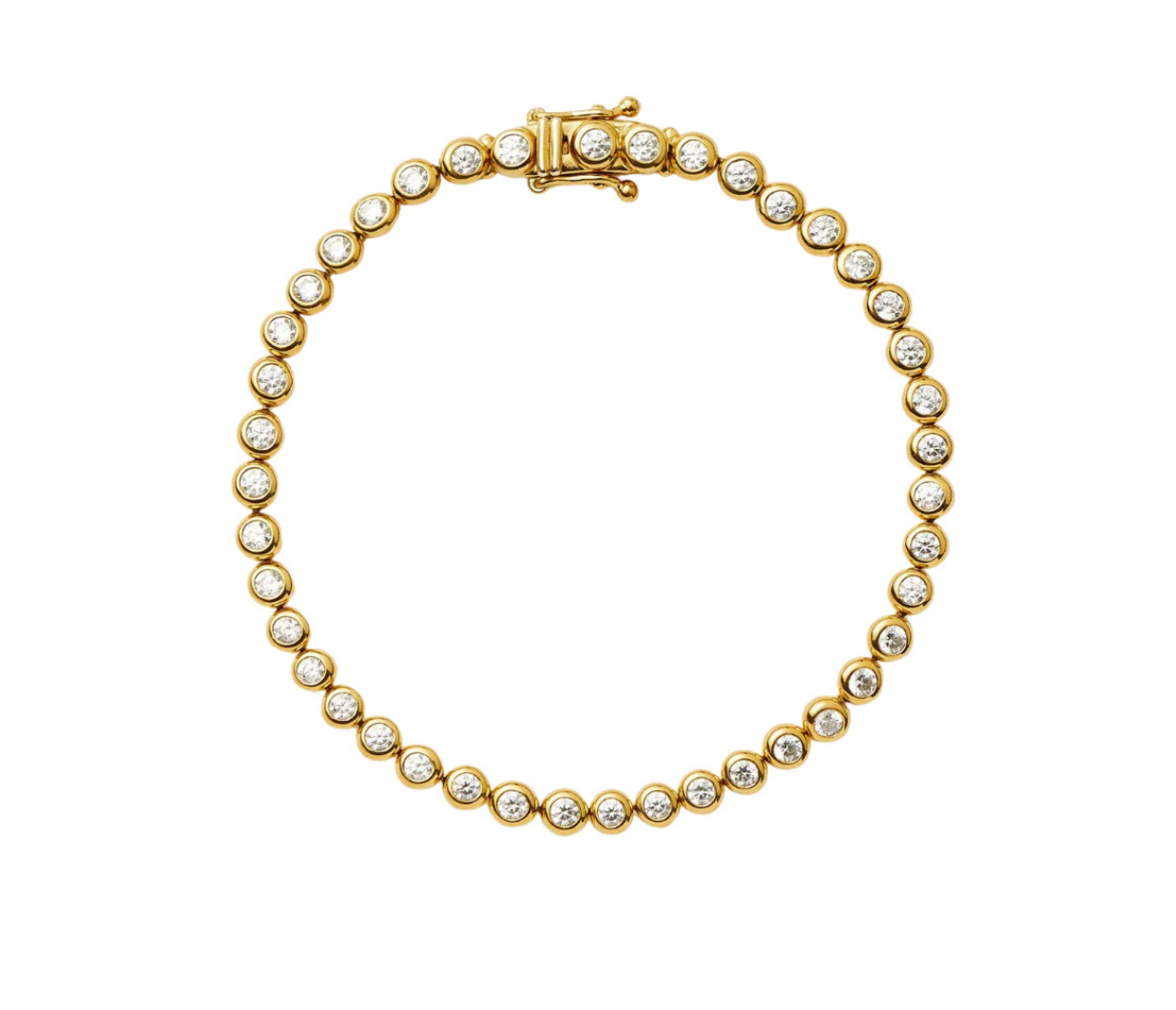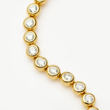 Introducing Missoma's Tennis Round Bracelet in Gold the ultimate luxe layer. This elegant bracelet features beaded detailing and is embellished with sparkling rounded cubic zirconia stones, creating a subtle yet luxurious shine. Perfect for wearing solo to let its beauty stand out, or pair it with chunky chains for an instant arm stack that radiates effortless style.