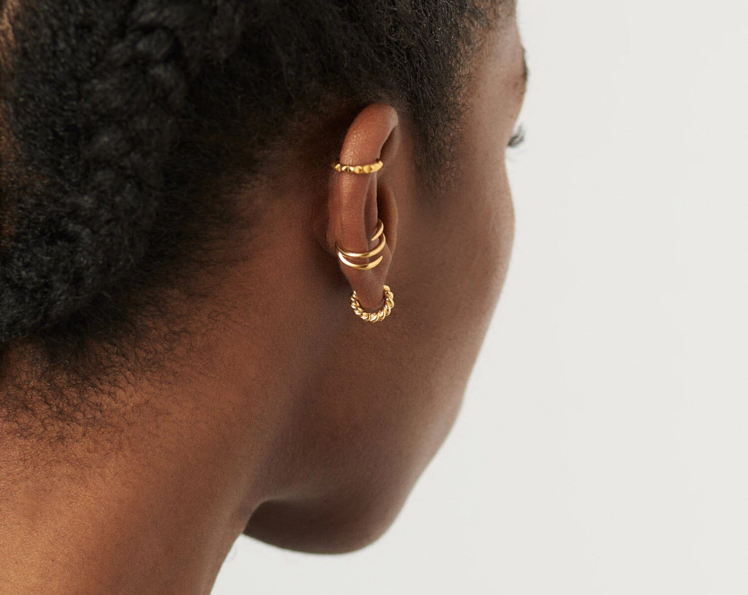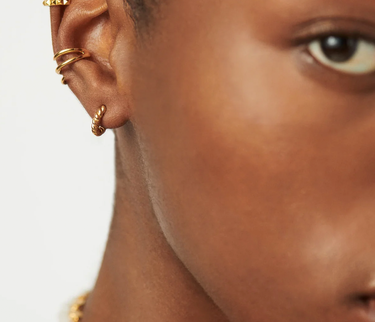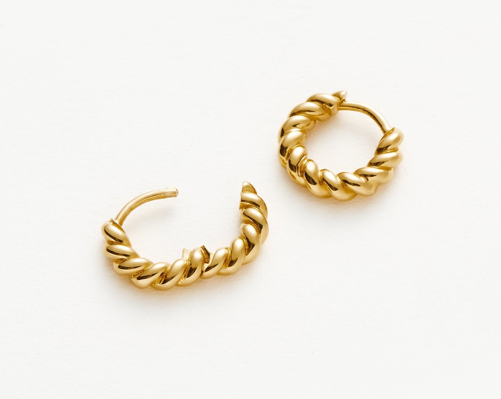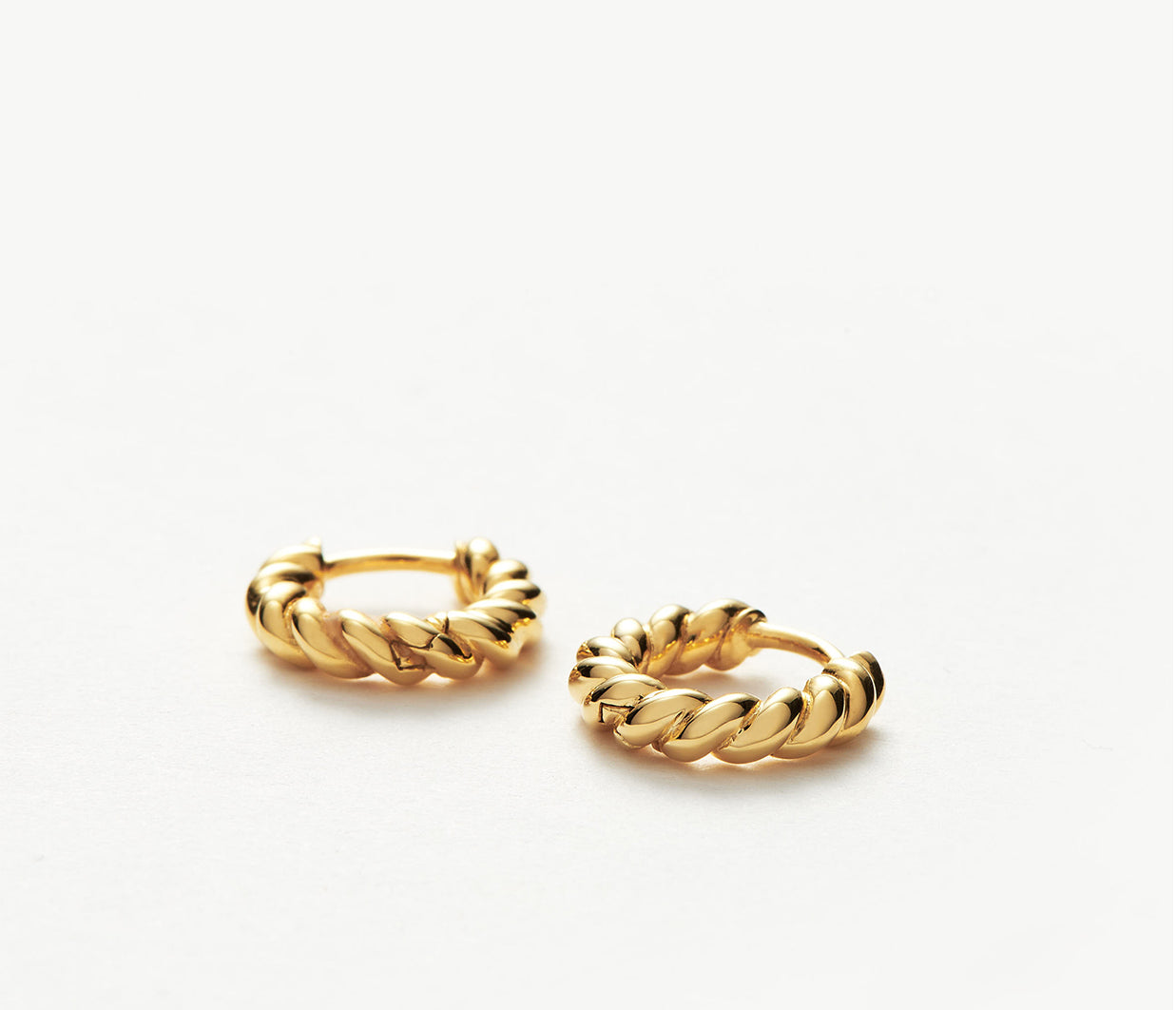 Introducing Twisted Helical Huggies Missoma’s best-selling helical hoops have been elevated into these sleeper huggies with a modern twist, featuring a hidden hinge for a seamless closure. Pair with mini hoops for a sleek ear stack or simply wear solo.