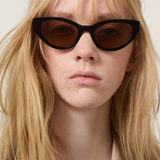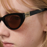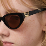 Introducing the Miu Miu Cat Eye Sunglasses in Black Grey, featuring a bold cat-eye silhouette that exudes contemporary femininity. The oversized acetate frame adds a dramatic flair, while the straight temples are elegantly adorned with the iconic Miu Miu vertical logo.