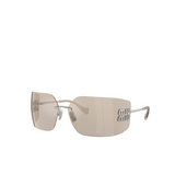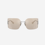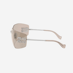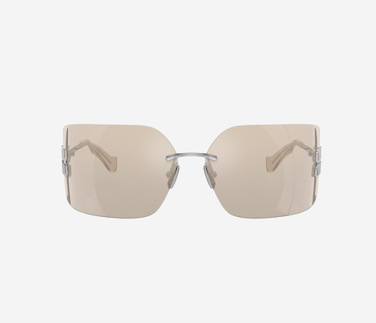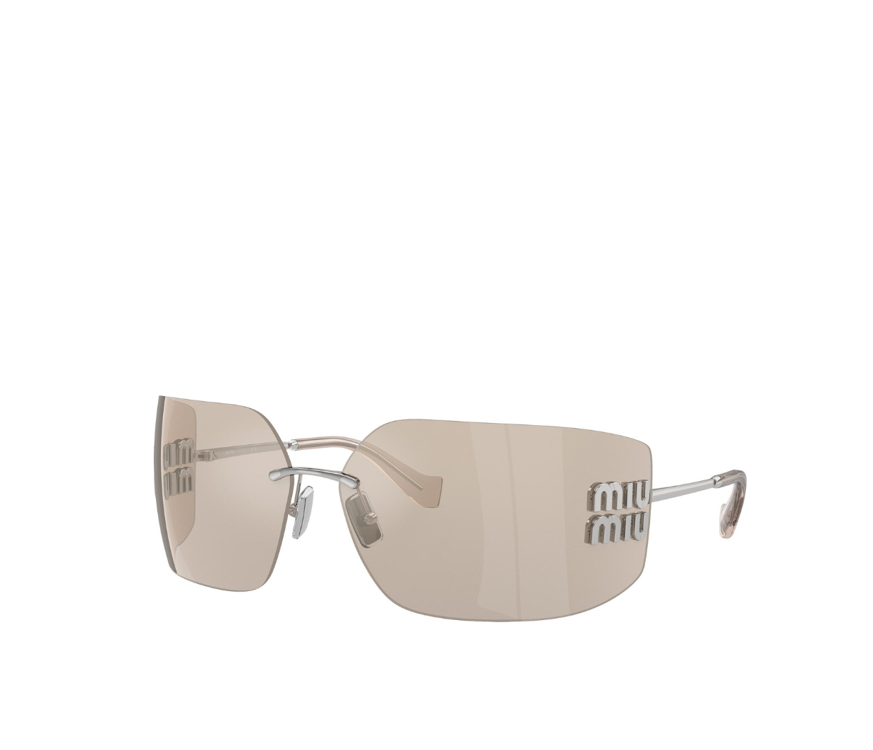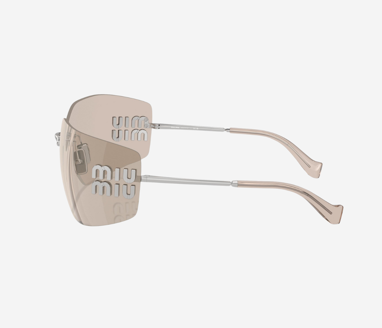 Introducing Miu Miu Sunglasses in Light Purple Brown. The metal gold frame and solid light purple brown lenses exude elegance, while the irregular shape provides an edgy twist on tradition. Elevated yet approachable, this iconic silhouette embodies both sophistication and playfulness.
