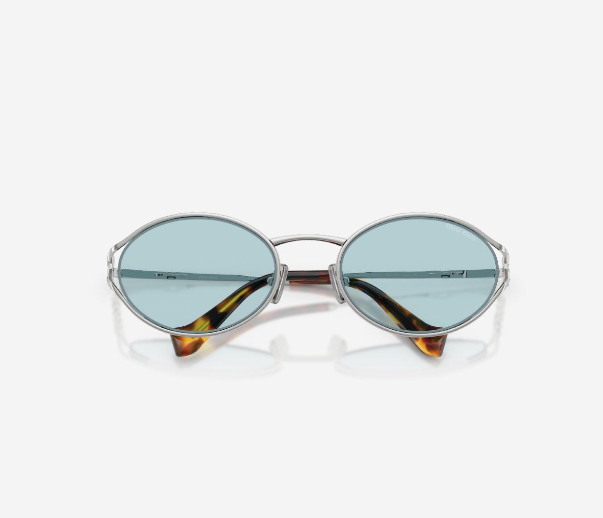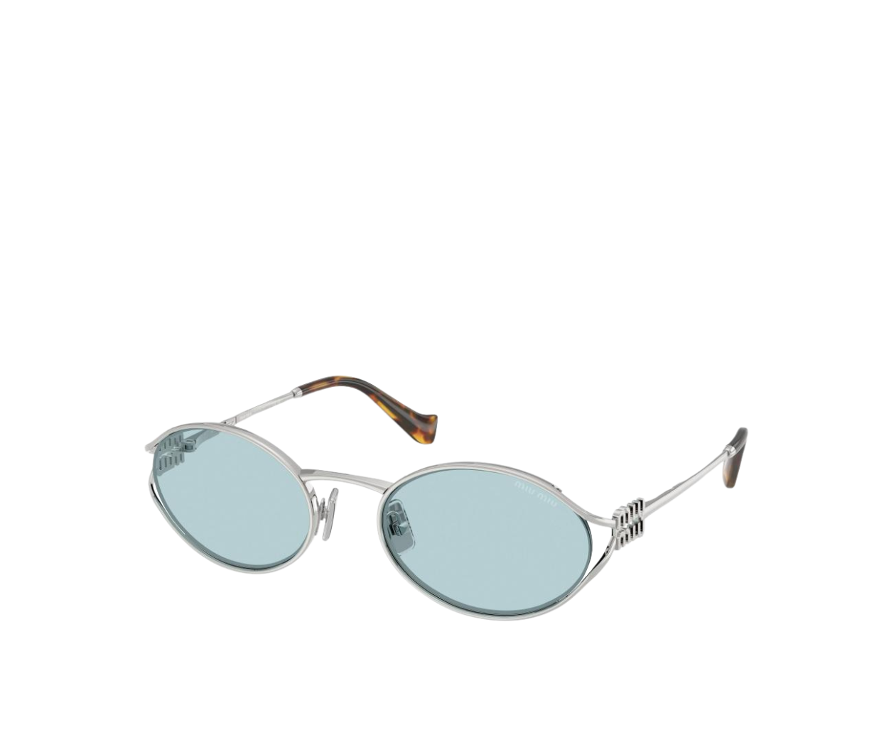 Miu Miu Oval Sunglasses in Light Blue Silver