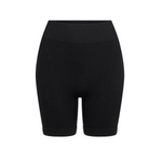 Introducing Balati Wool Biker Short in Black a fine rib Merino wool seamless knit biker short made in our signature seamless fabrication offering mild compression for support and breathability. The style features a double layer waistband with jacquard Nagnata logo on front and back waistband.
