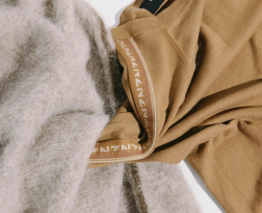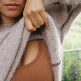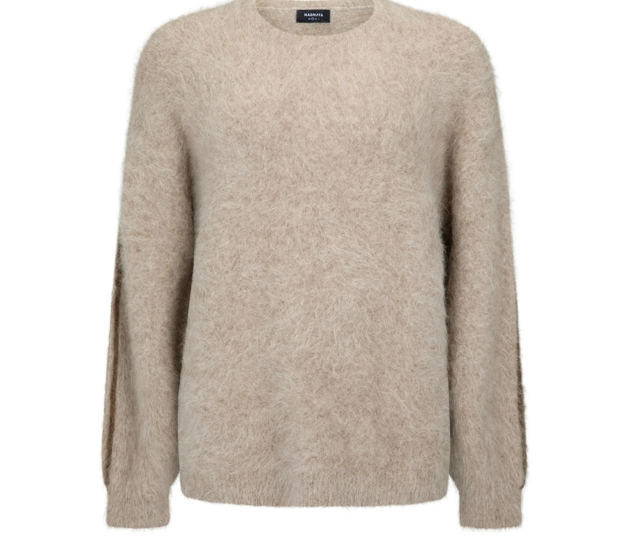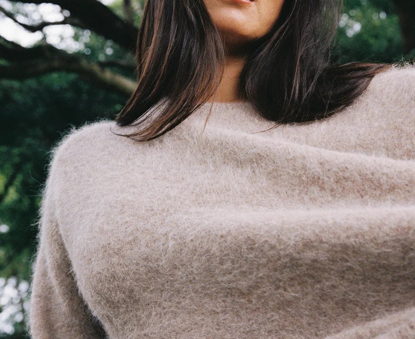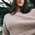 Introducing Nagnata's Brushed Alpaca Wool Sweater in Alphine. Crafted from a luxurious brushed alpaca blend, offering an ultra-soft hand-feel and effortless warmth. Designed in a relaxed silhouette, it features sculptural sleeves and a subtle contrast highlight along the side seams adding unexpected edge to a classic knit.